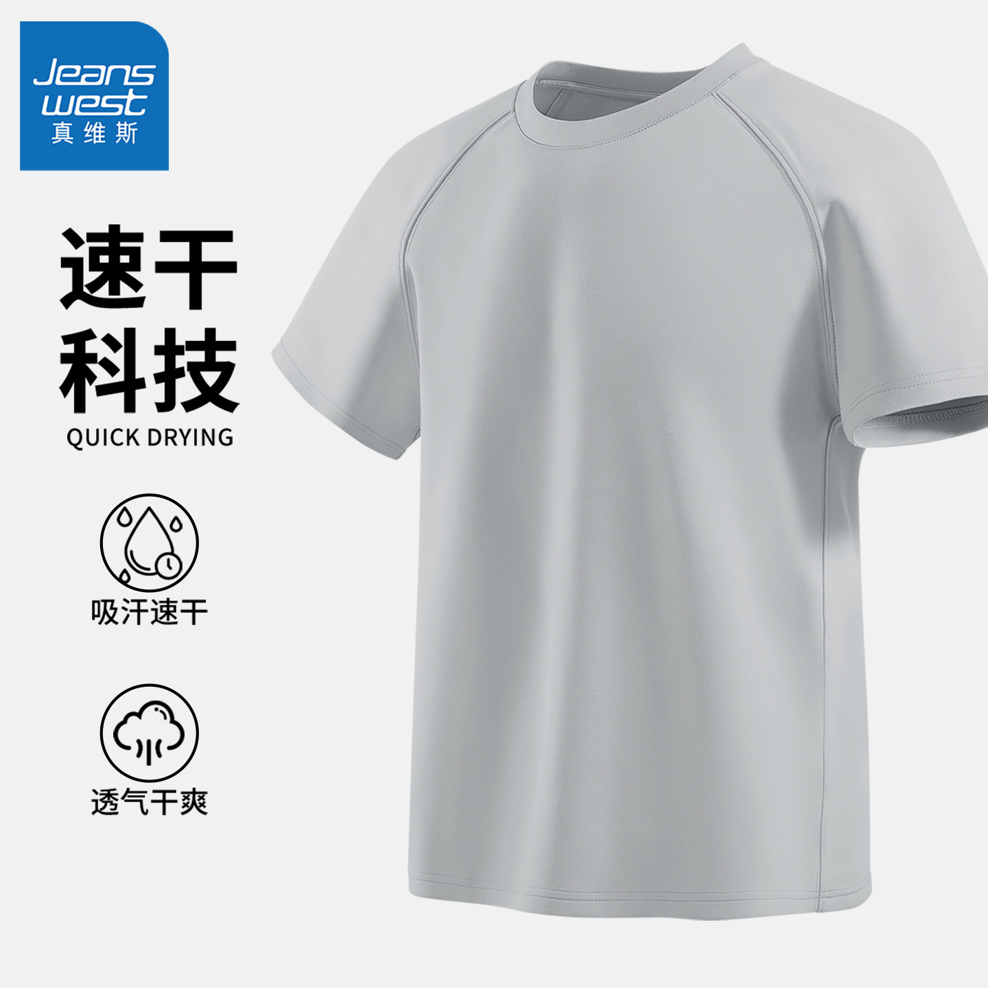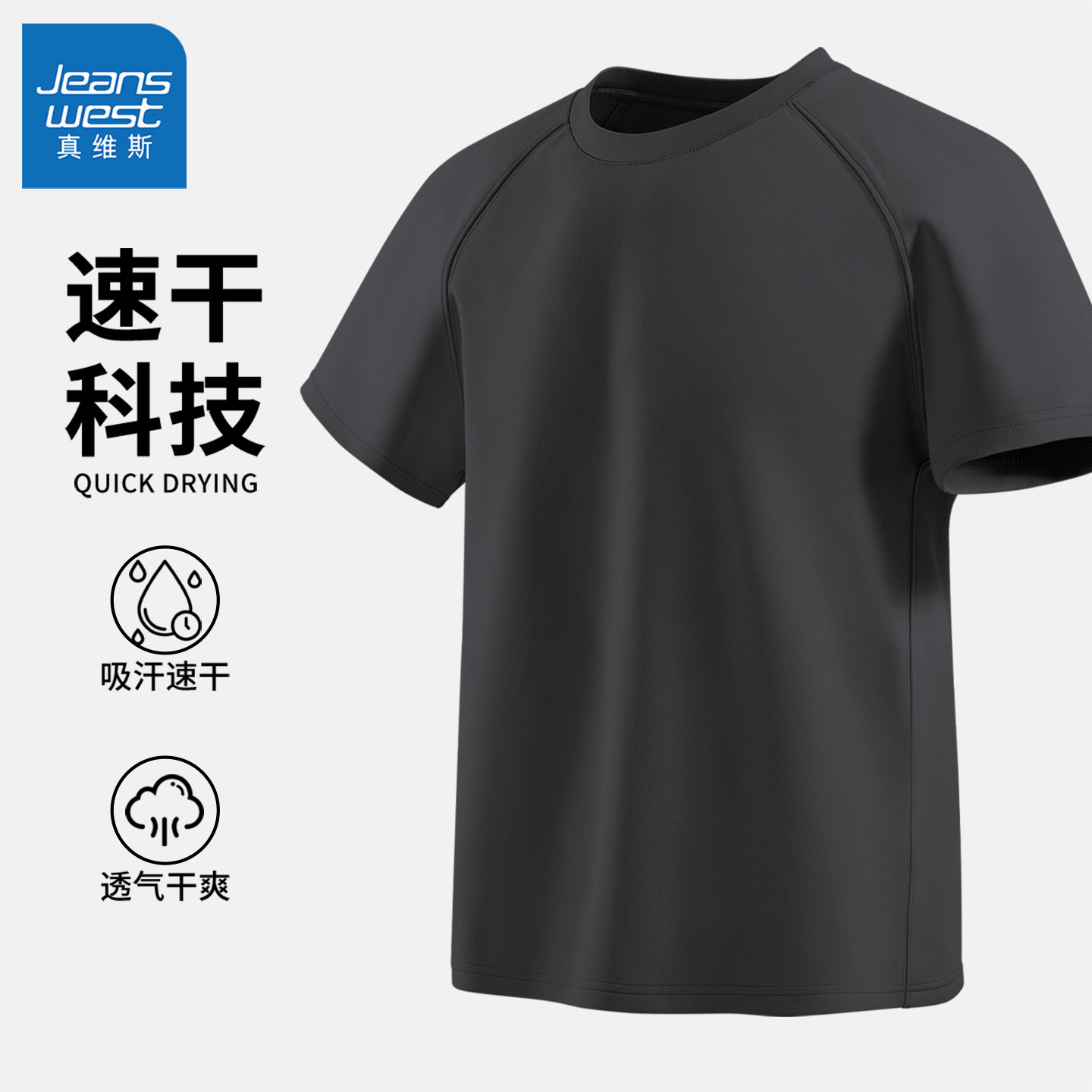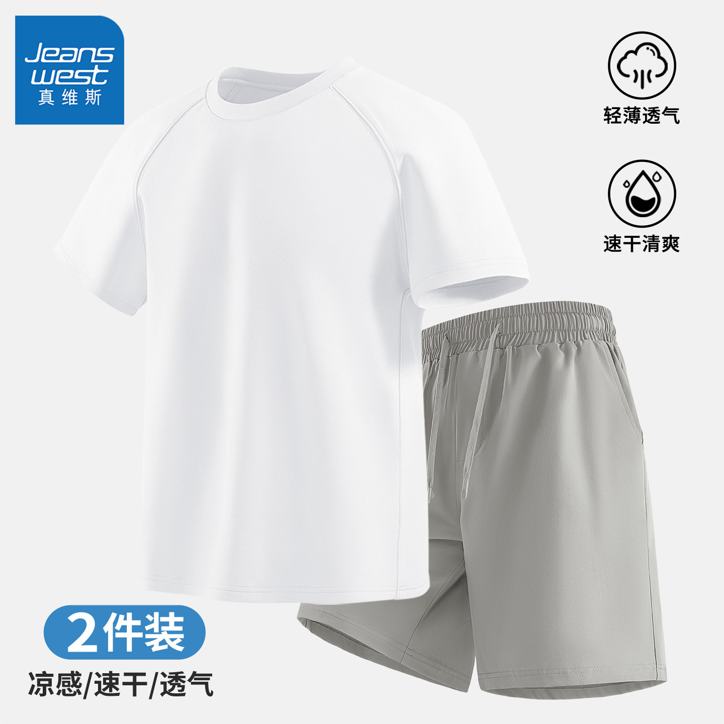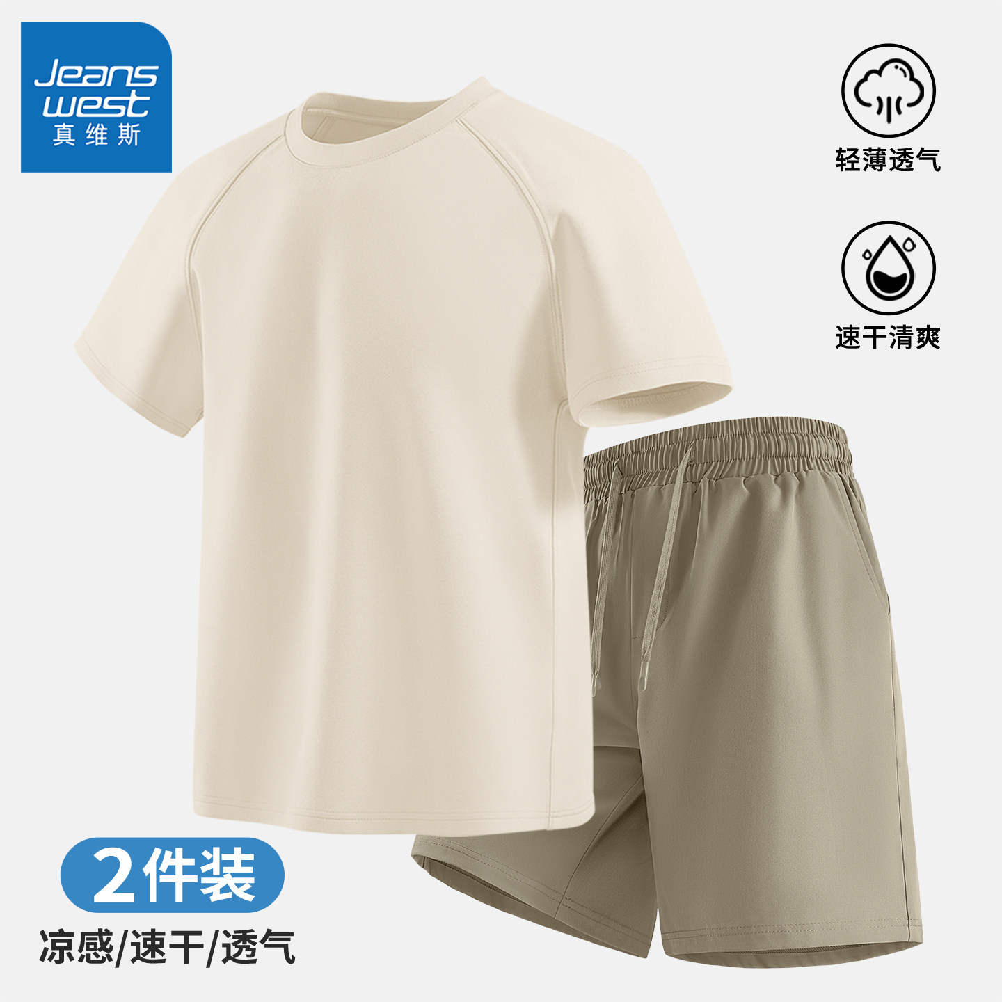 真维斯短袖t恤短裤两件套男夏轻薄透气速干跑步运动休闲套装男士Q