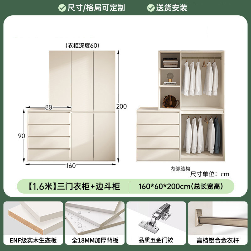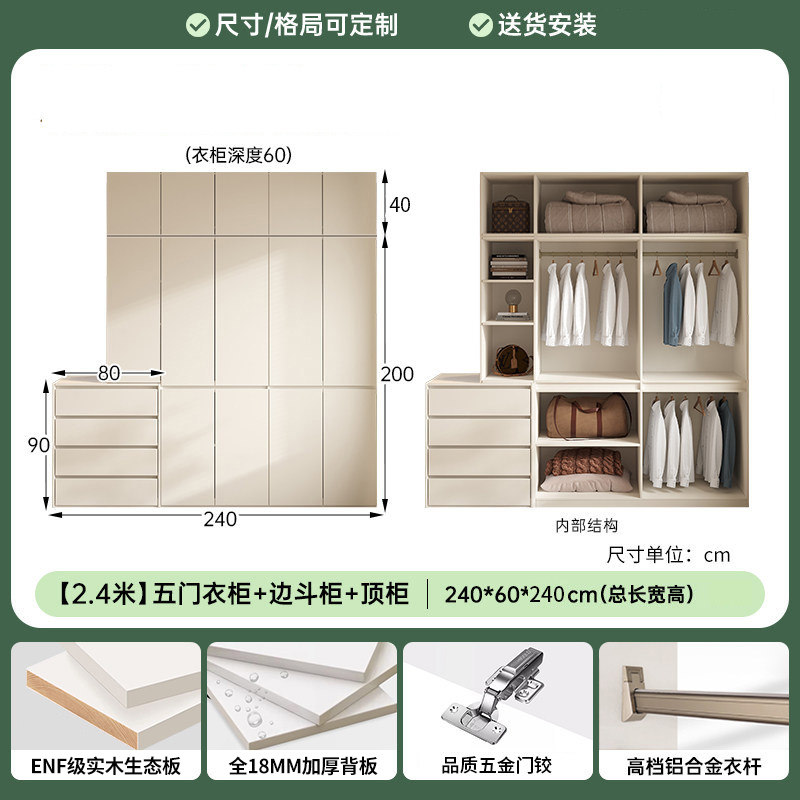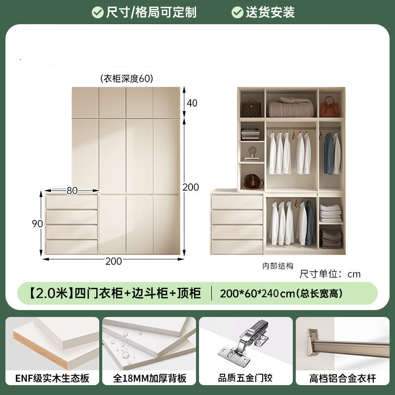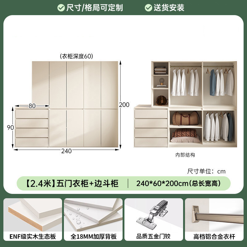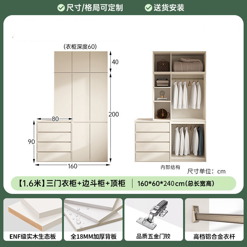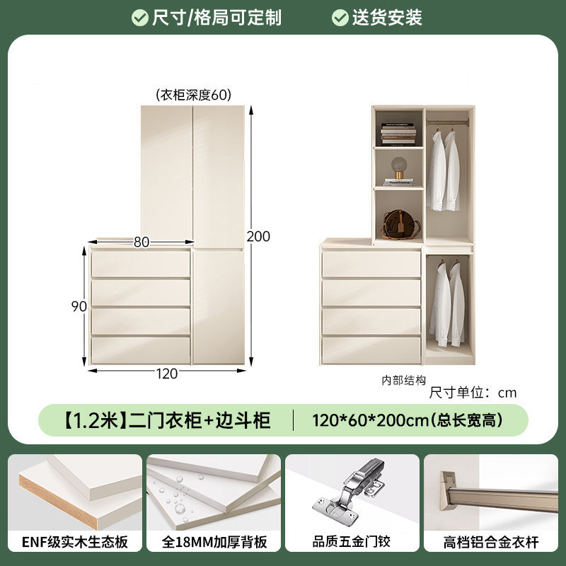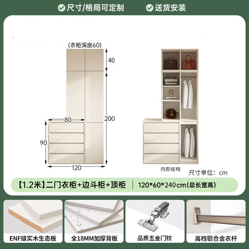 ENF级全实木中古风衣柜斗柜一体家用卧室2026新款爆款儿童免安装