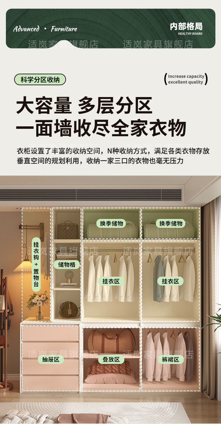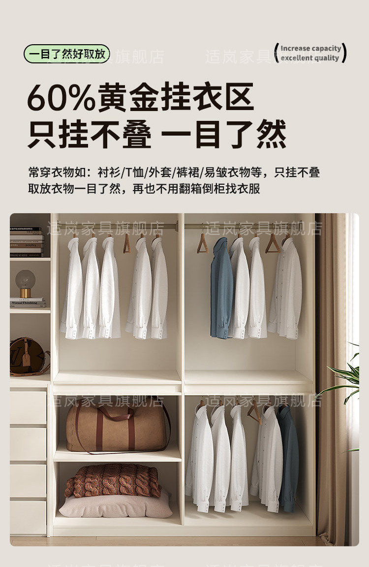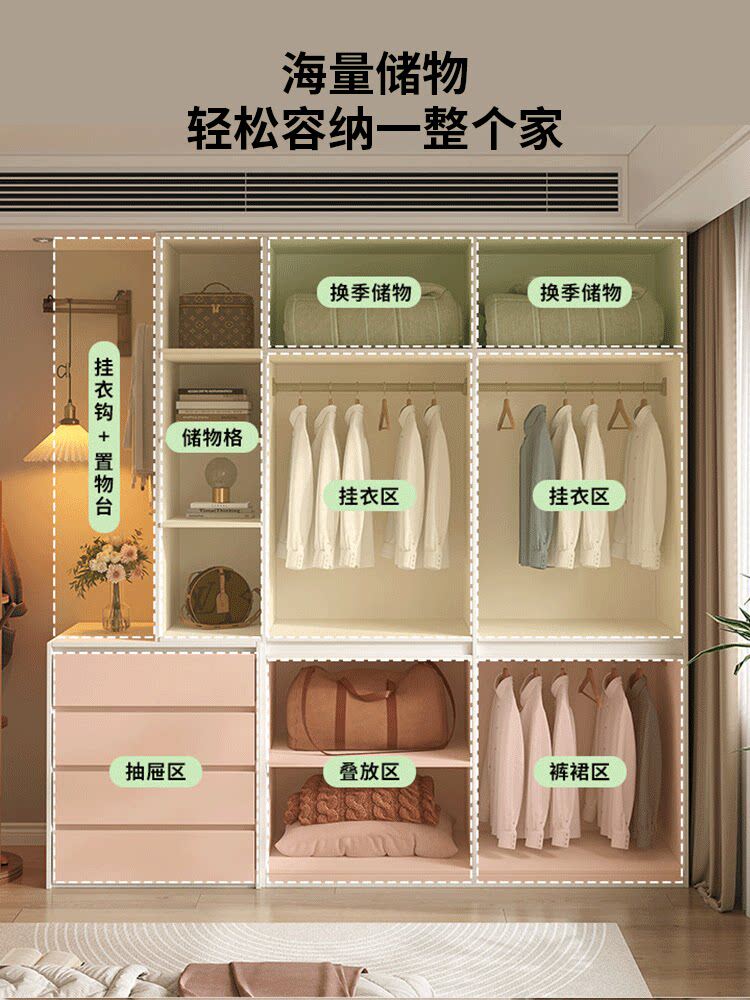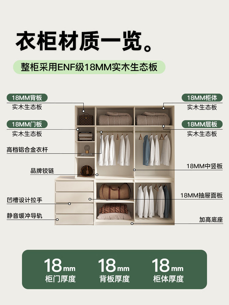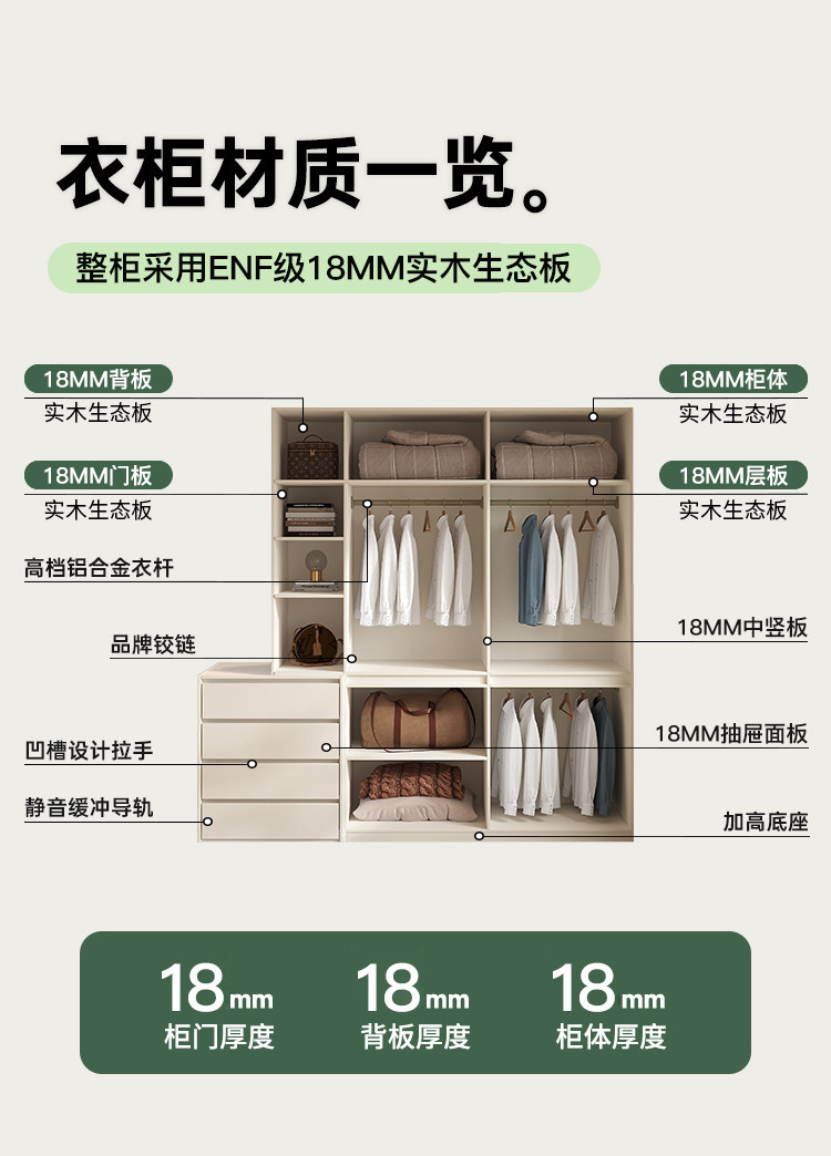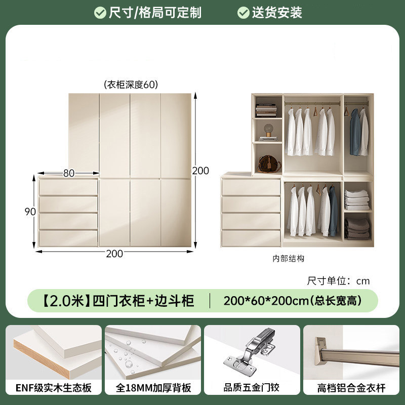 ENF级全实木中古风衣柜斗柜一体家用卧室2026新款爆款儿童免安装