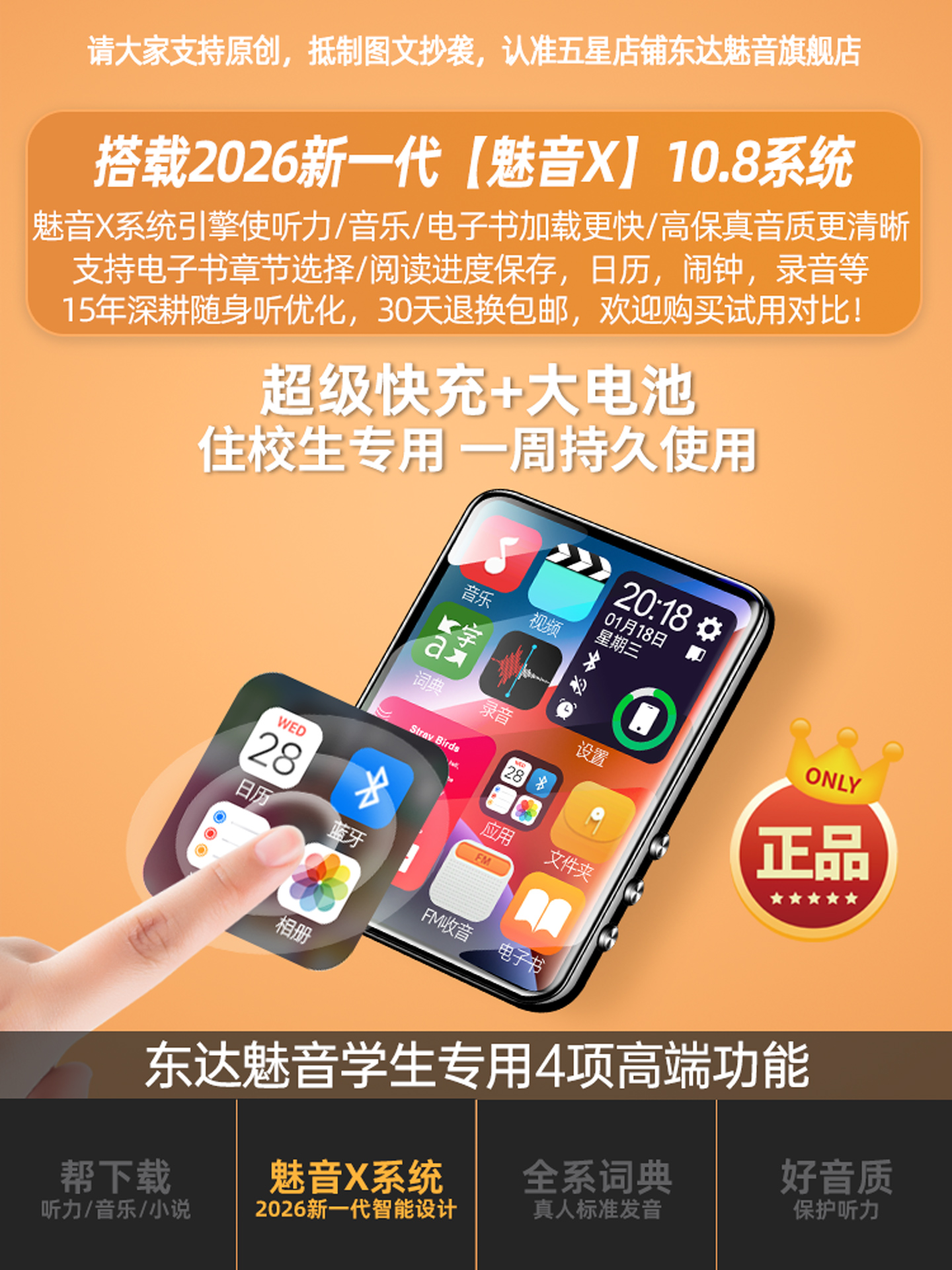 东达魅音全面屏mp3mp4随身听学生版蓝牙高中生专用触摸屏p3播放器