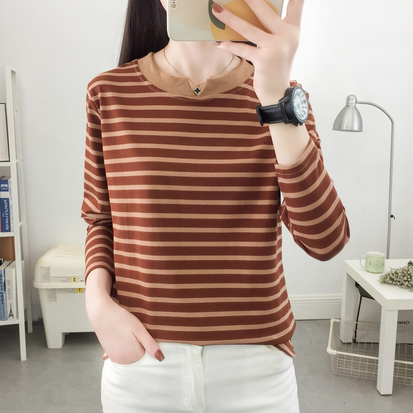 秋装2025年新款长袖t恤女士宽松大码纯棉秋衣妈妈打底衫外穿上衣