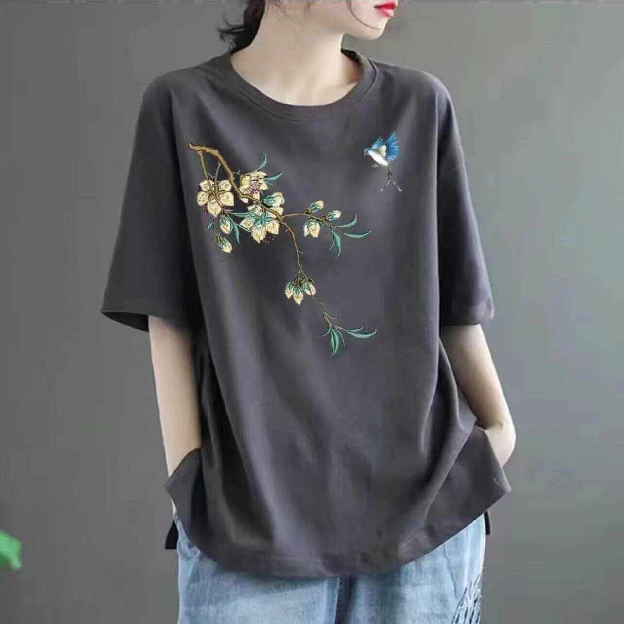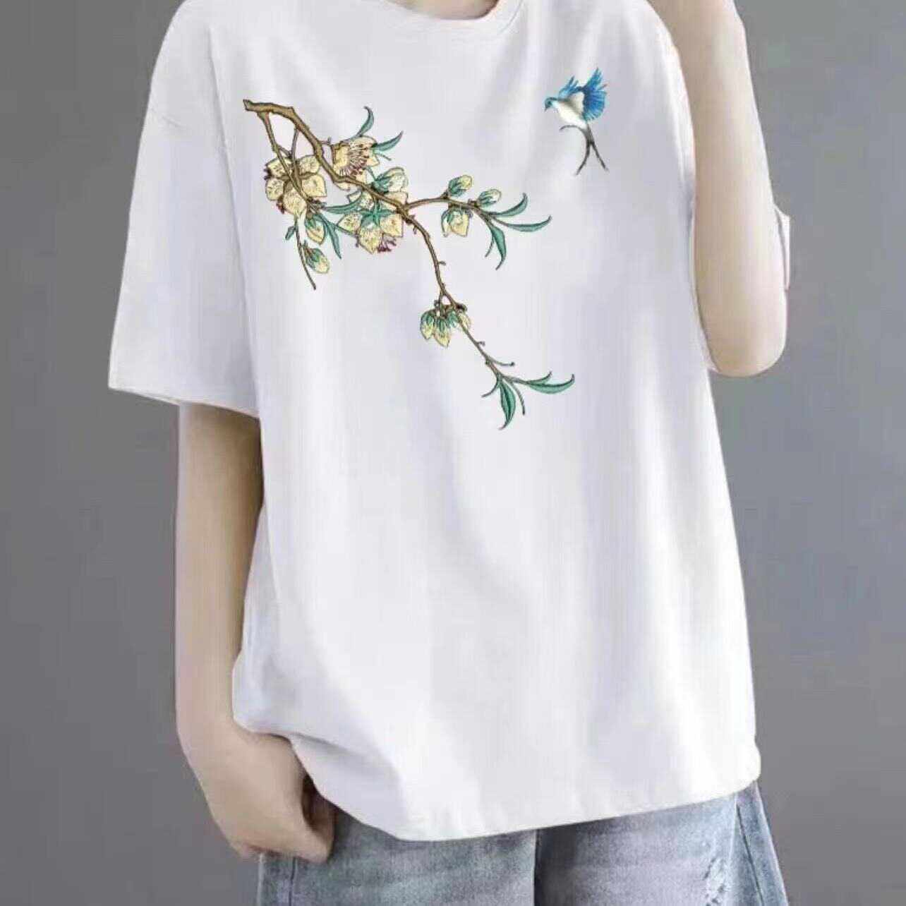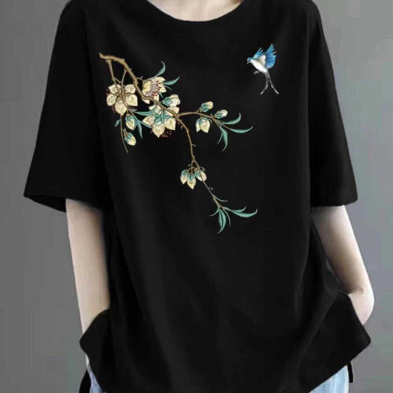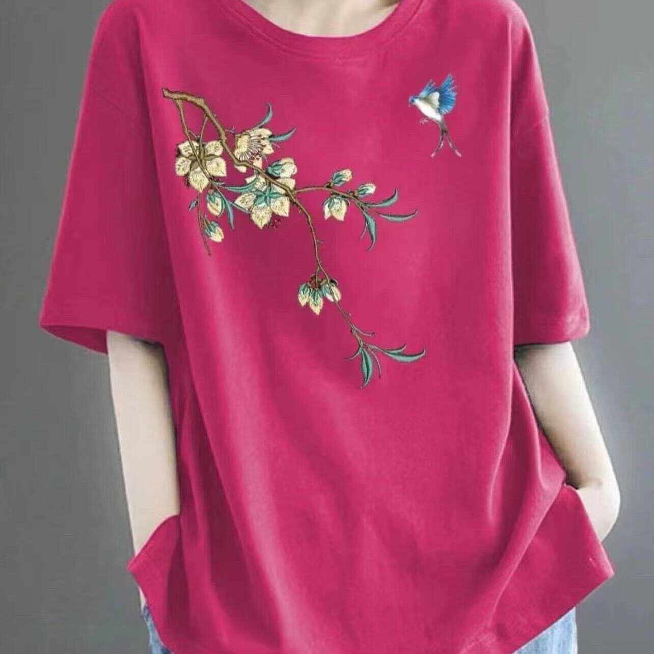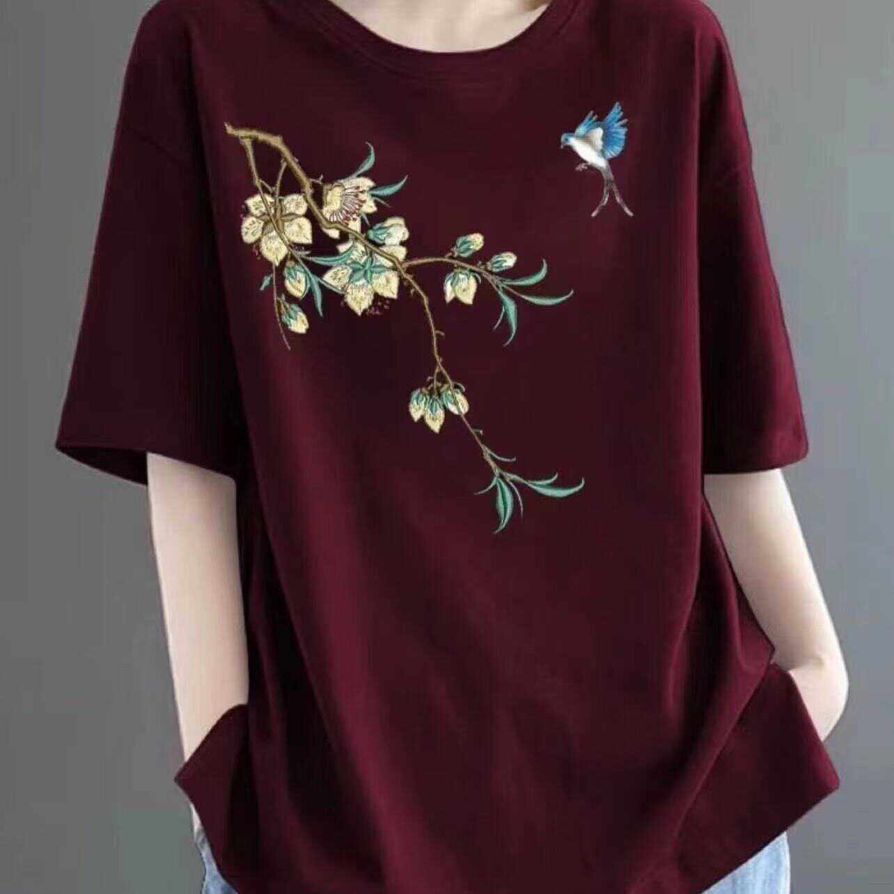 全棉短袖t恤女2024新款夏季中年妈妈装体恤时尚减龄宽松休闲上衣