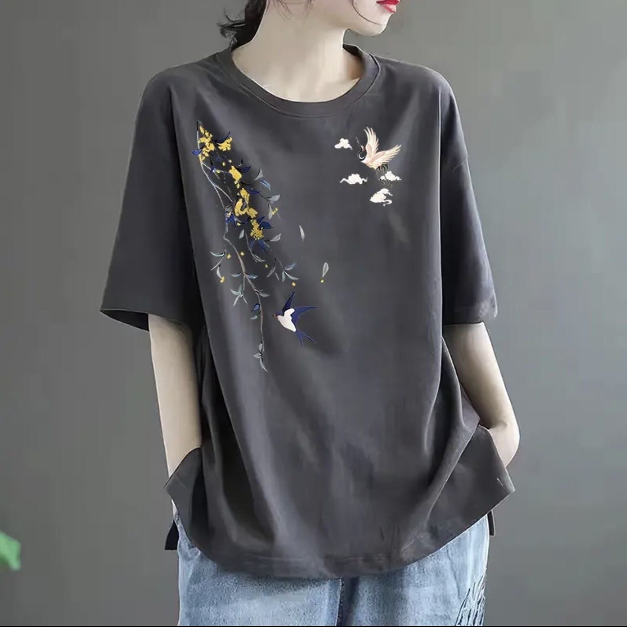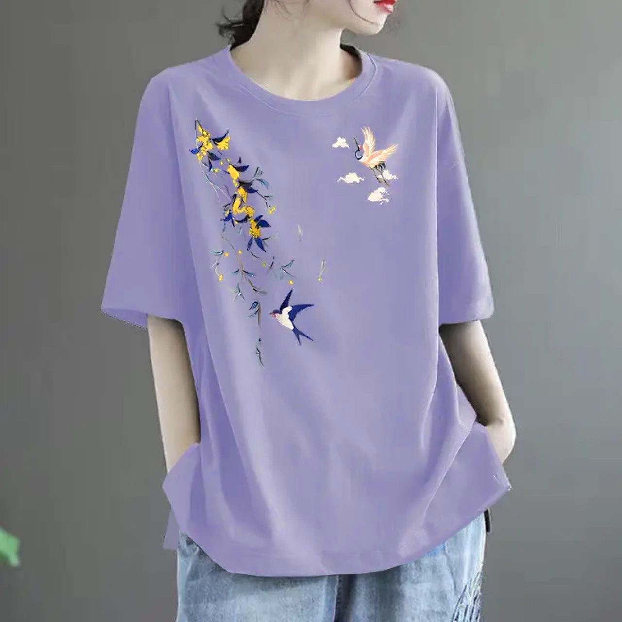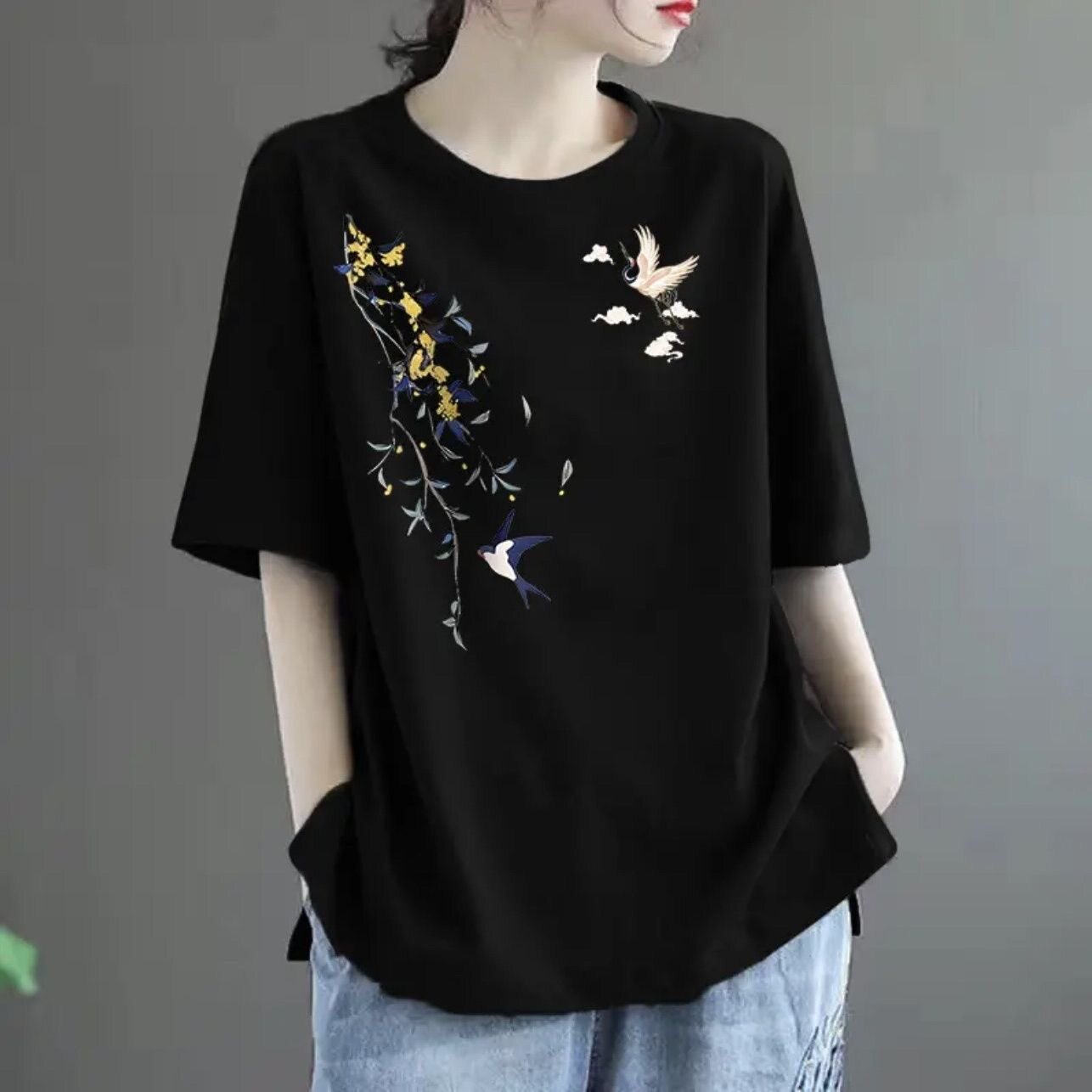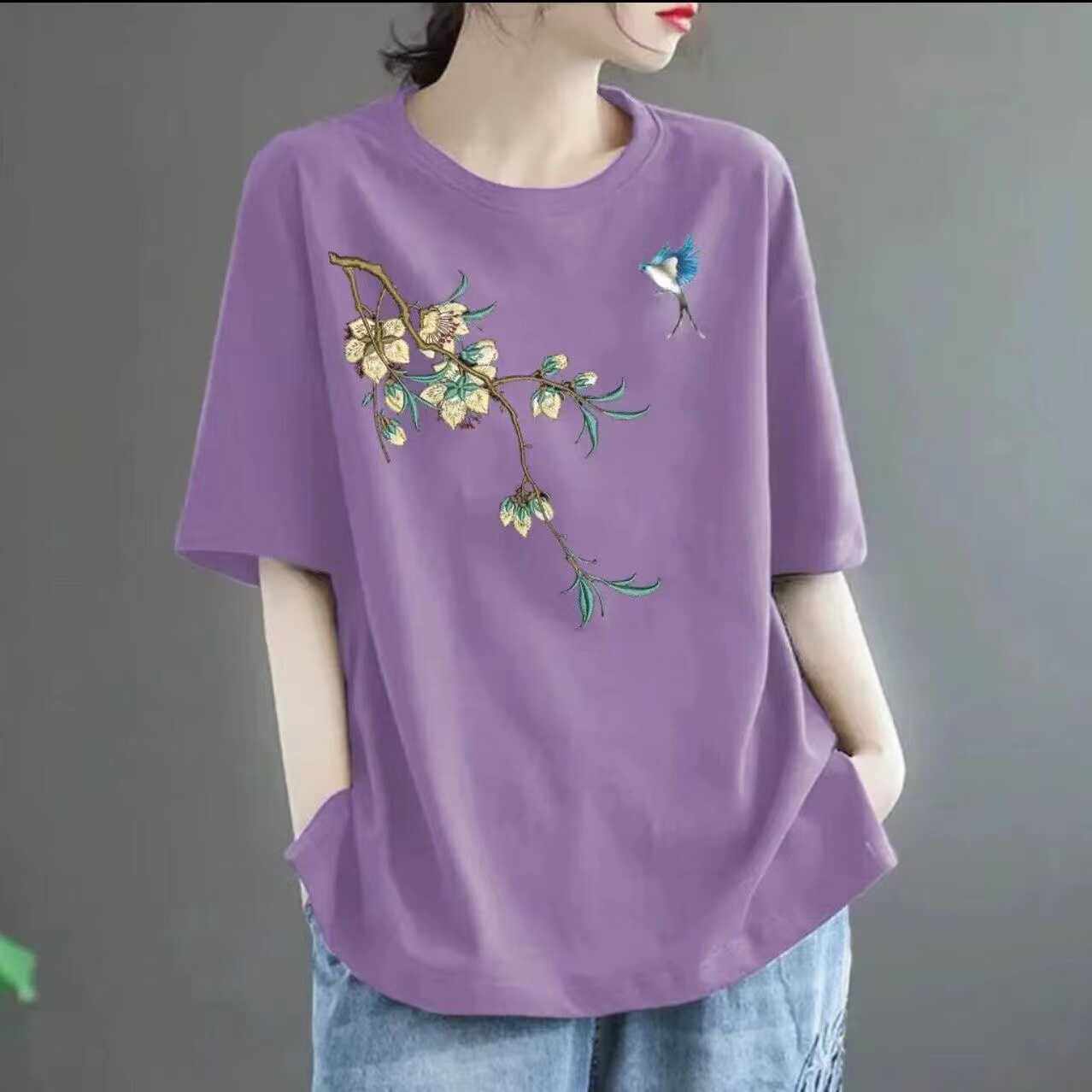 全棉短袖t恤女2024新款夏季中年妈妈装体恤时尚减龄宽松休闲上衣