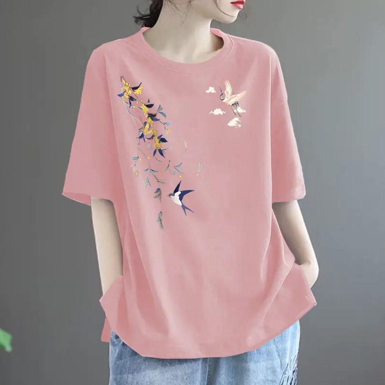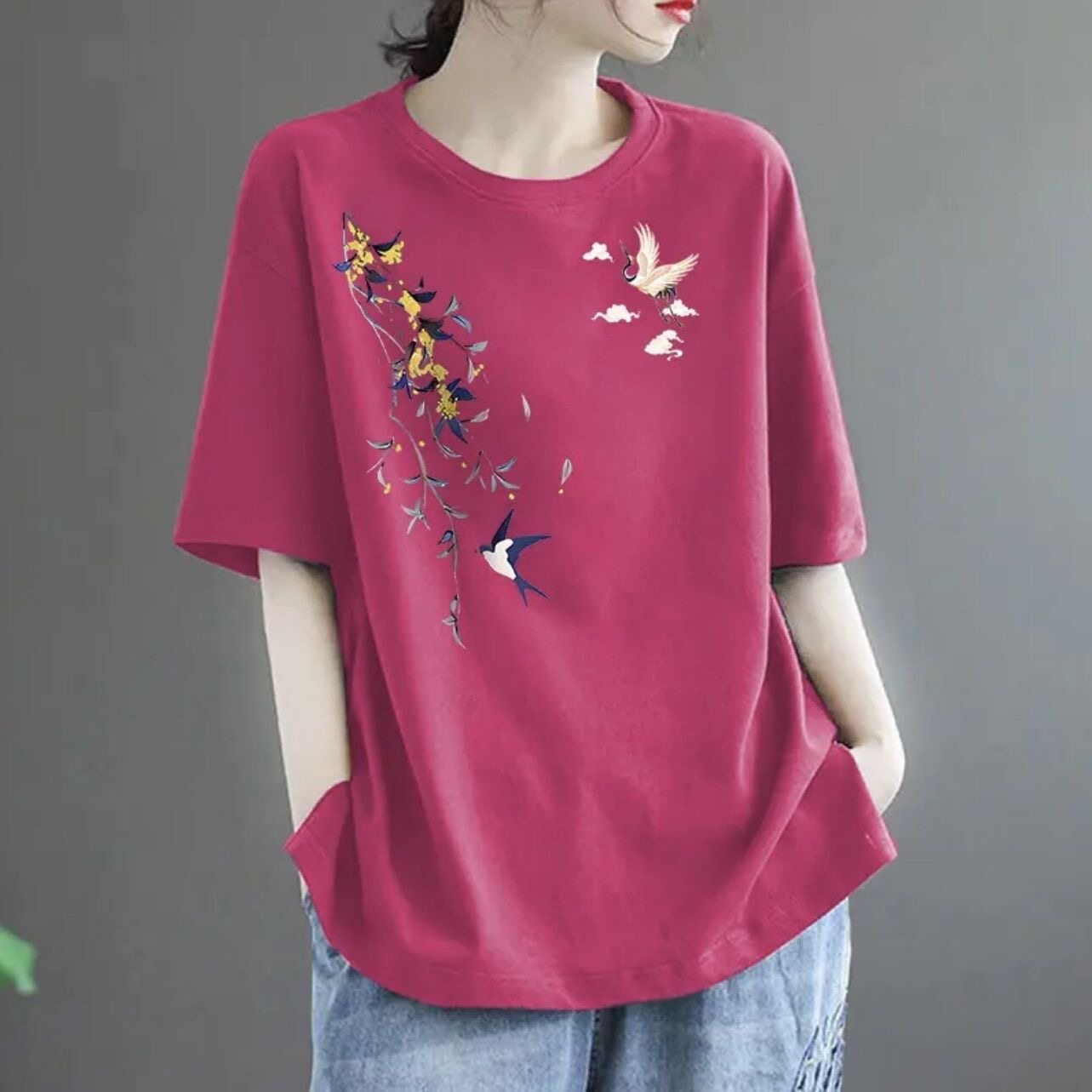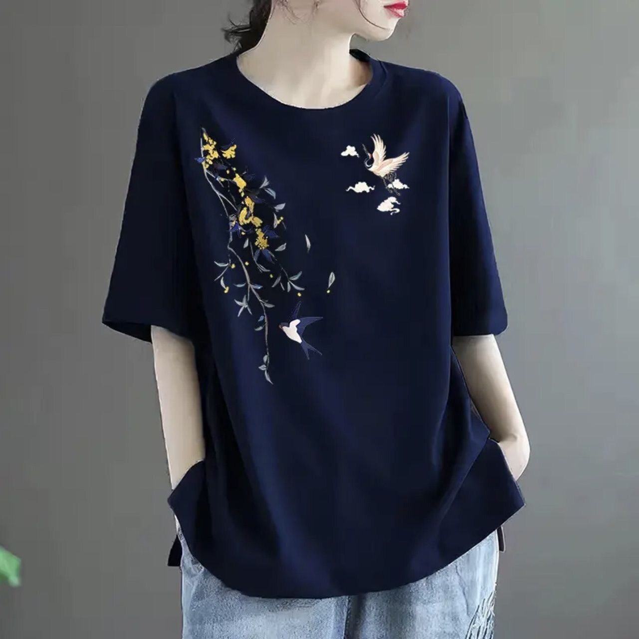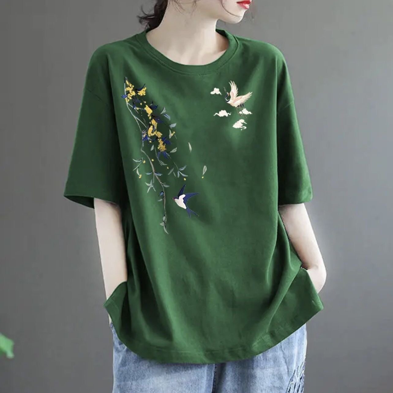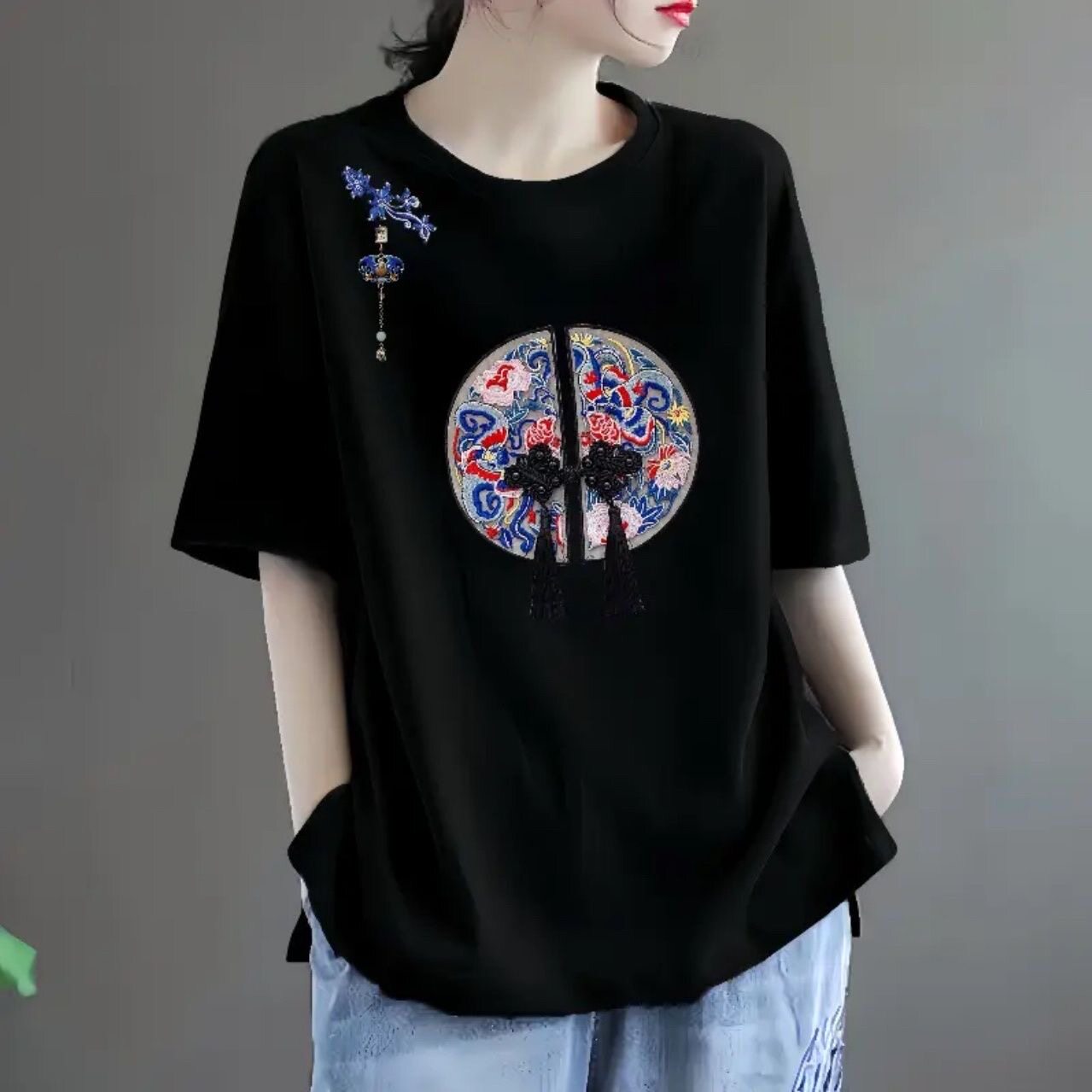 全棉短袖t恤女2024新款夏季中年妈妈装体恤时尚减龄宽松休闲上衣