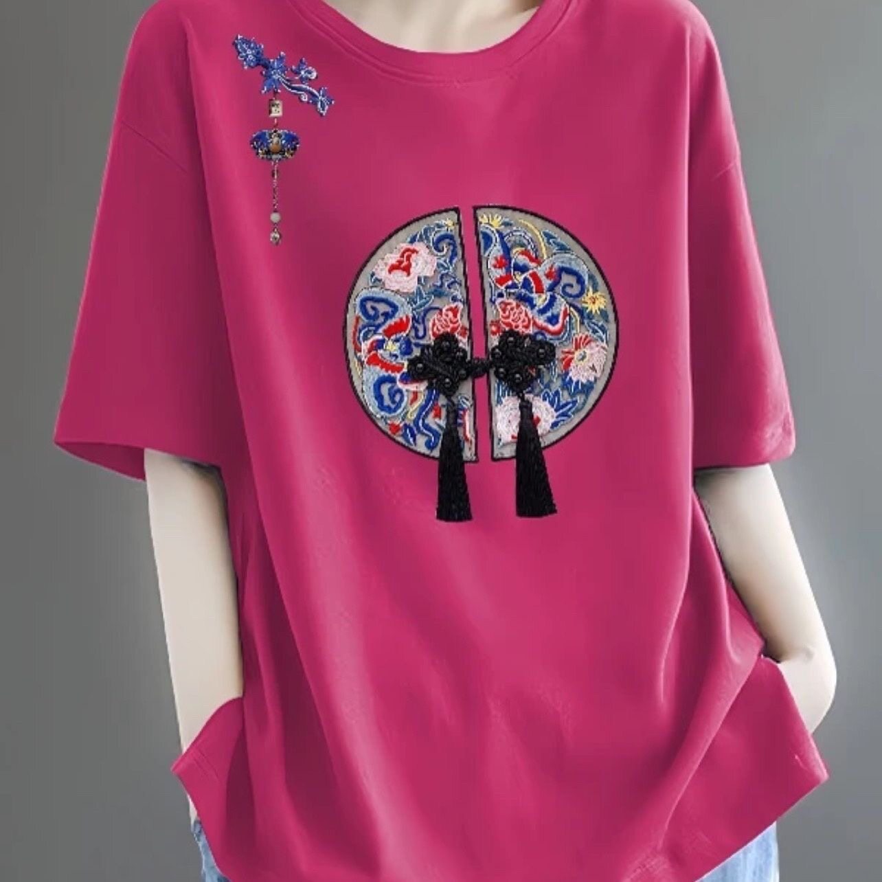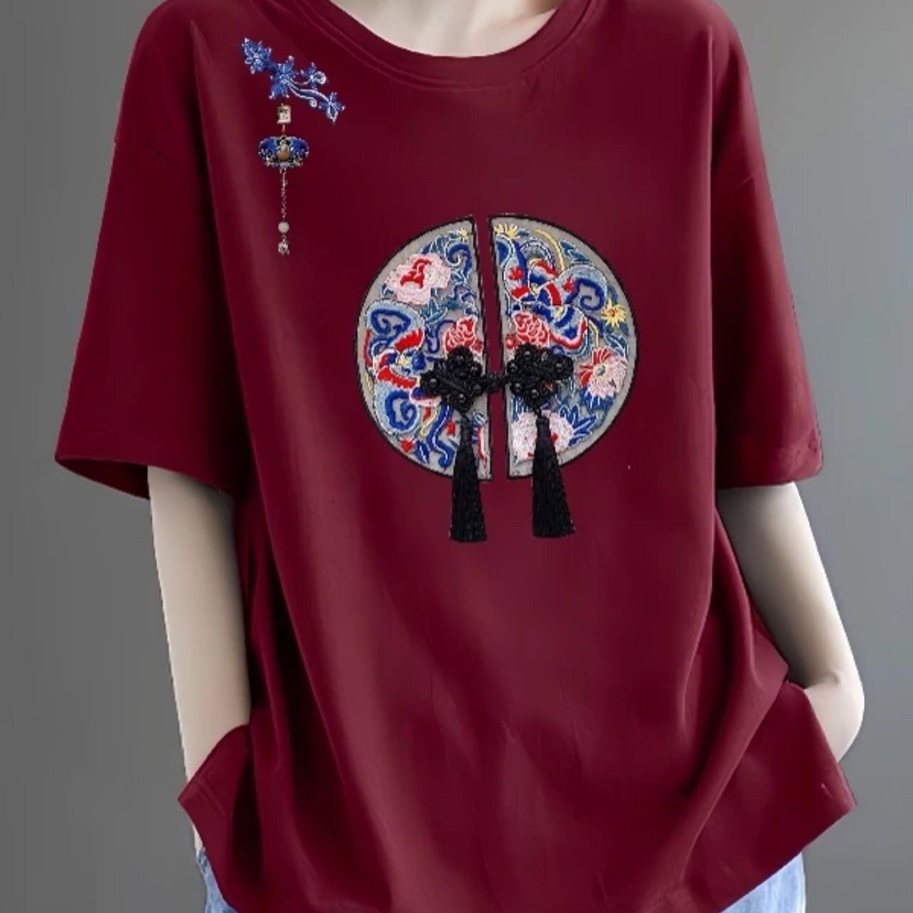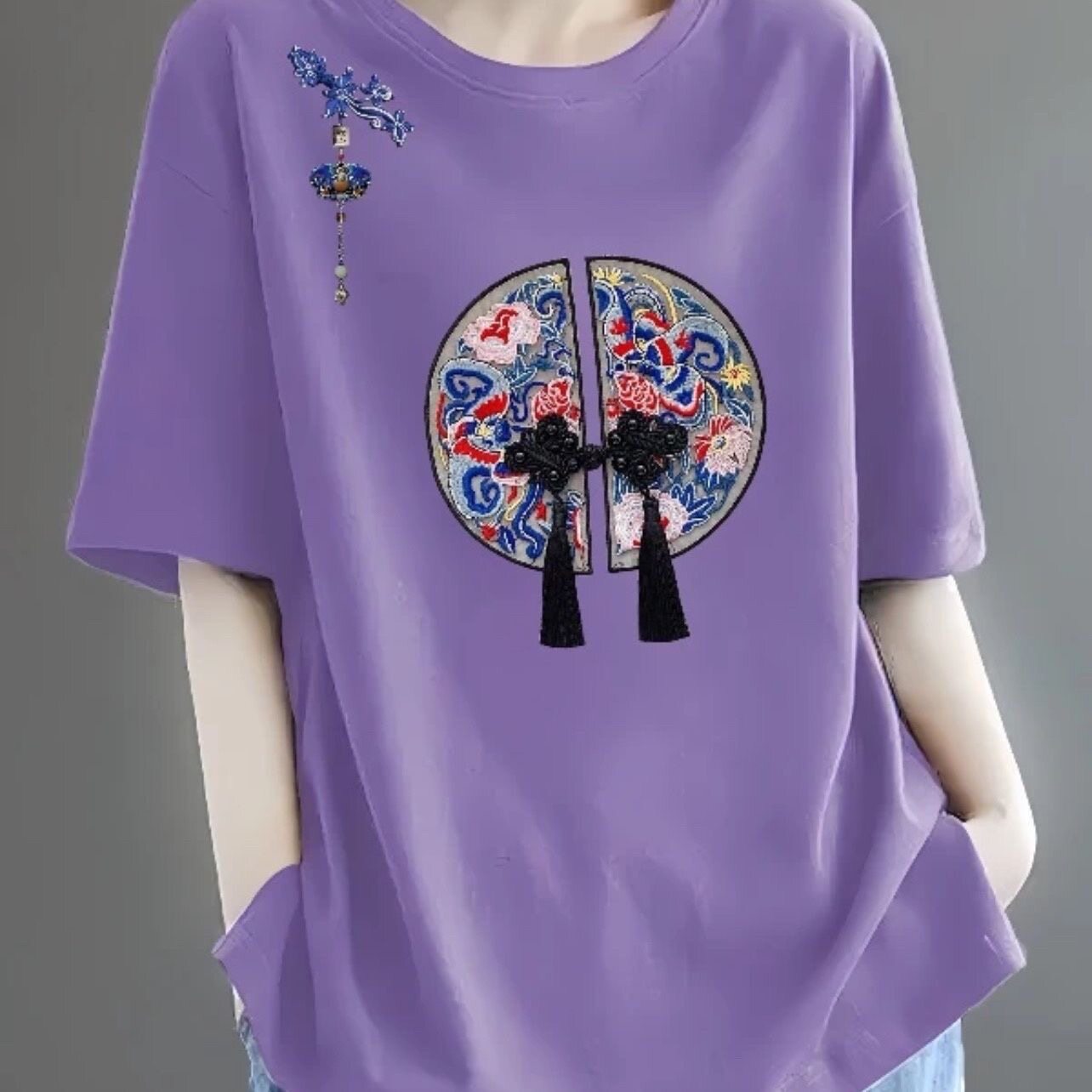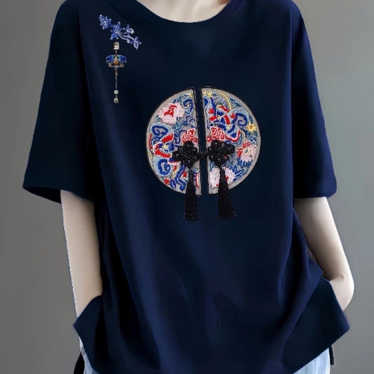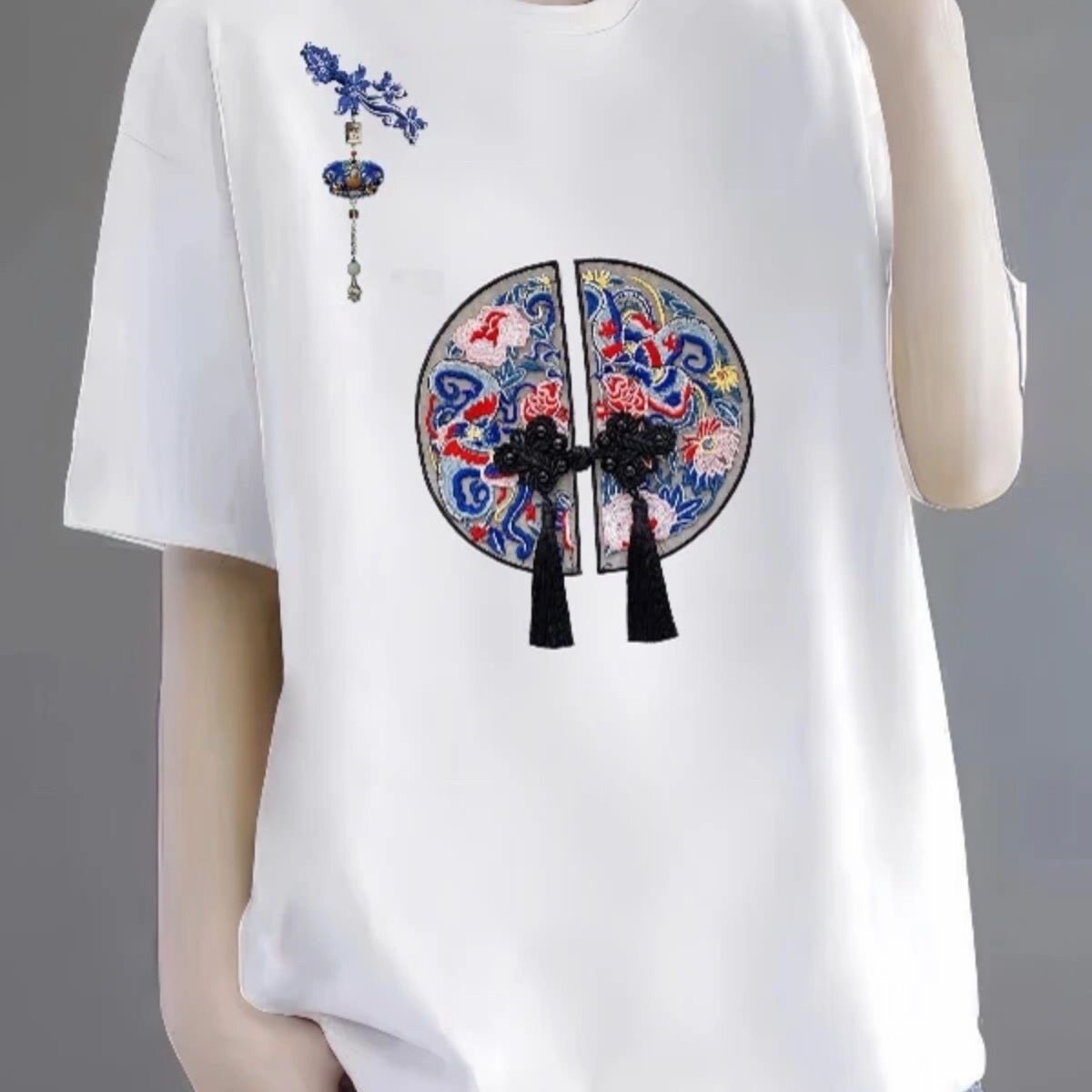 全棉短袖t恤女2024新款夏季中年妈妈装体恤时尚减龄宽松休闲上衣