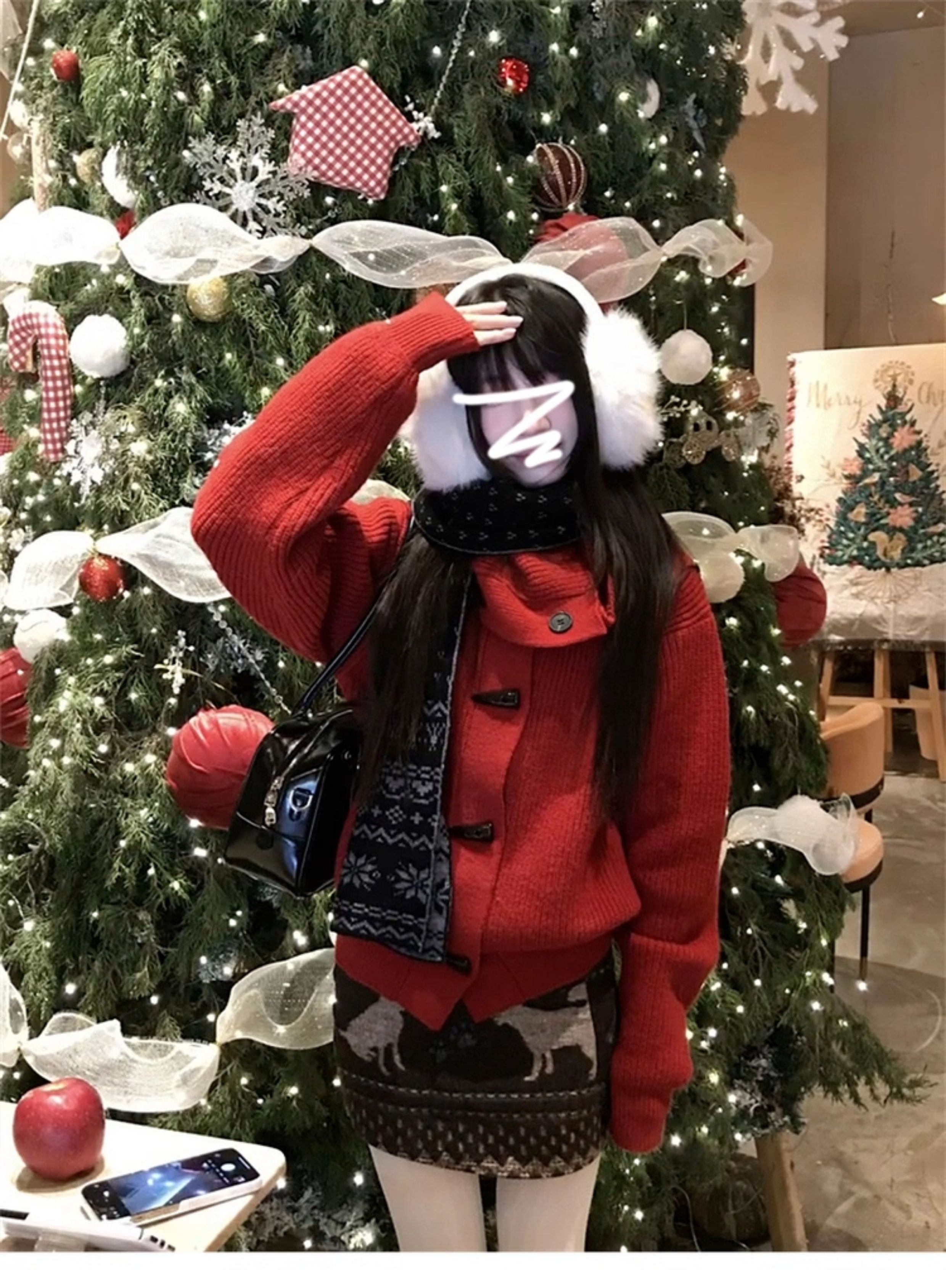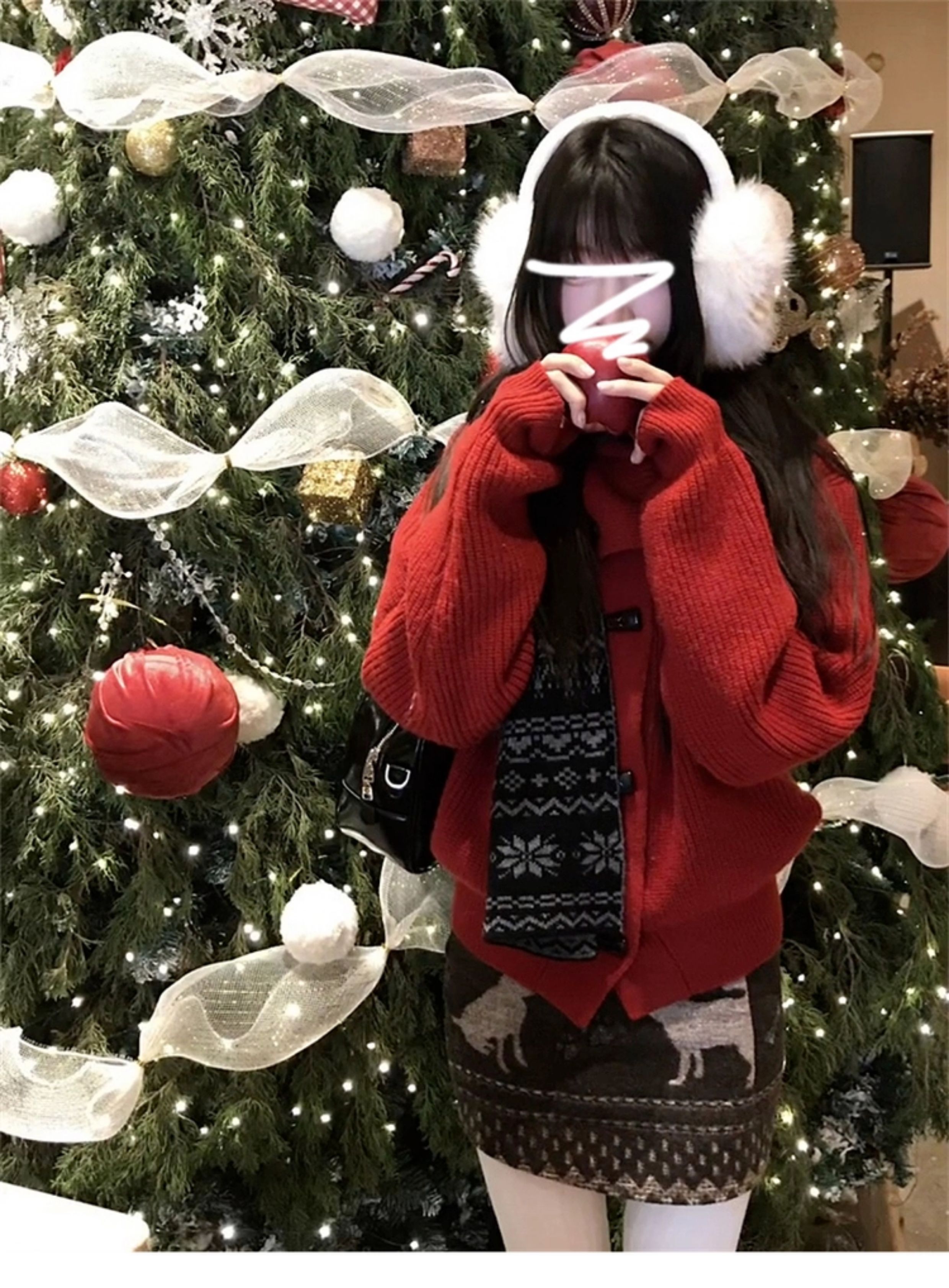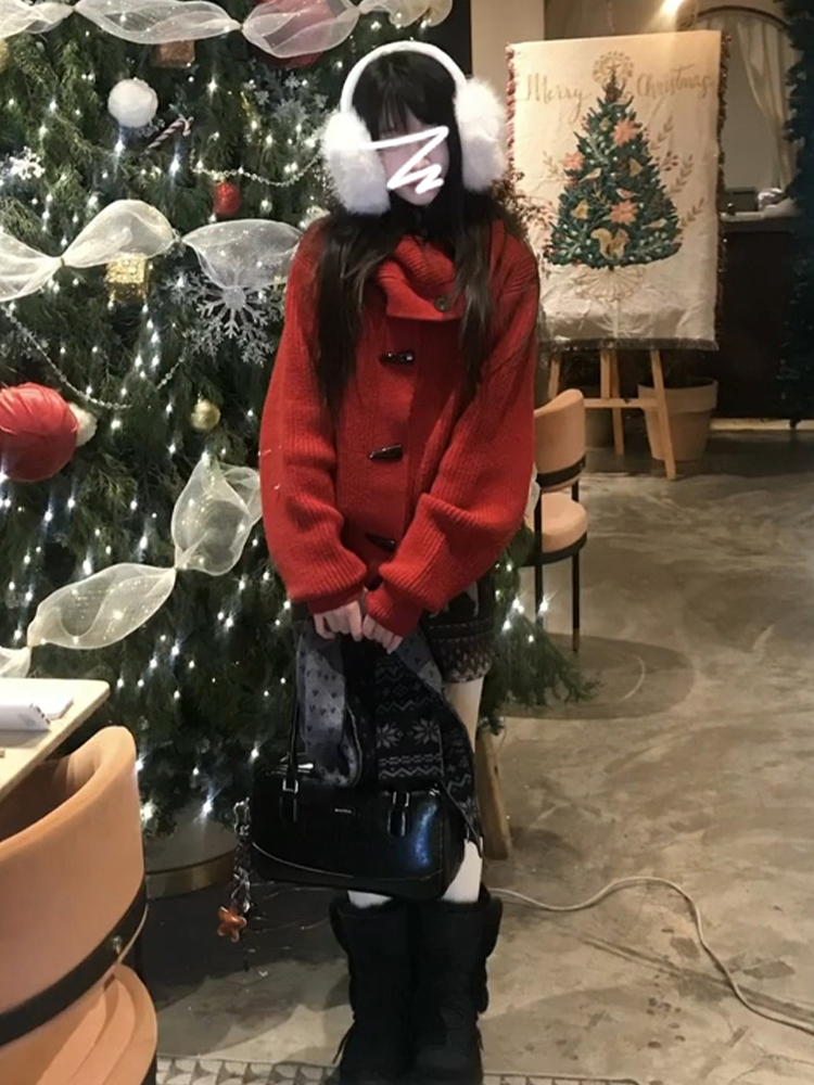 圣诞穿搭高级感红色高领毛衣女装2025秋冬季新款慵懒风针织衫上衣