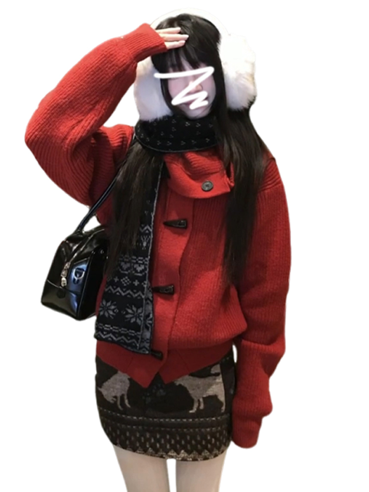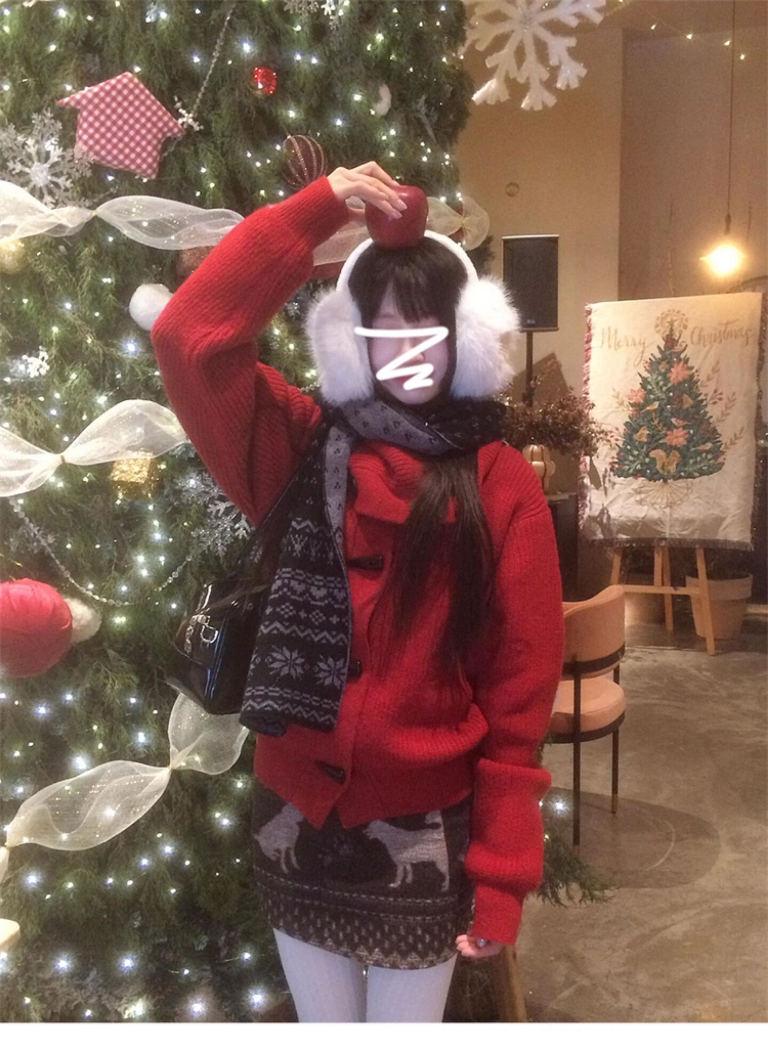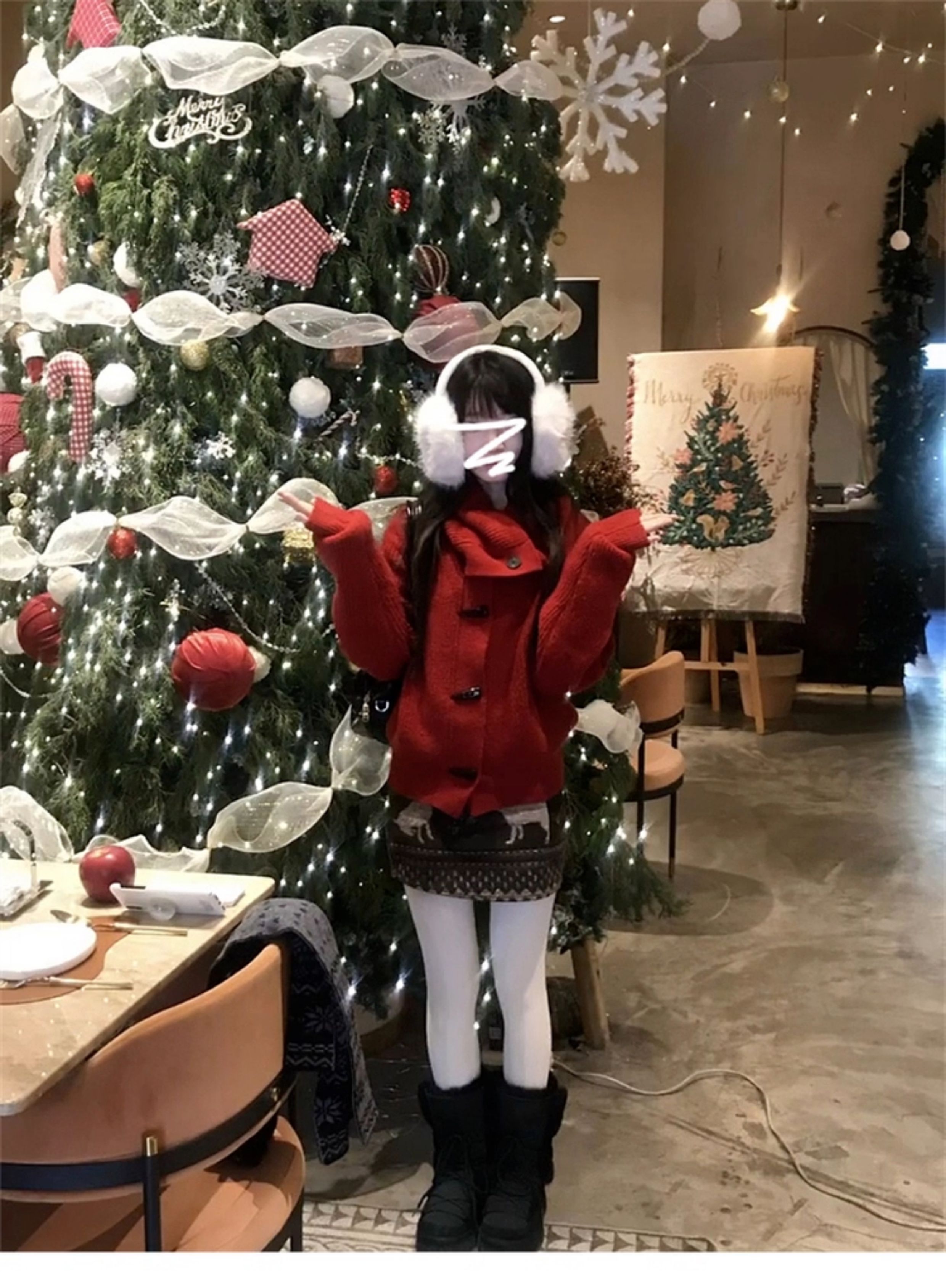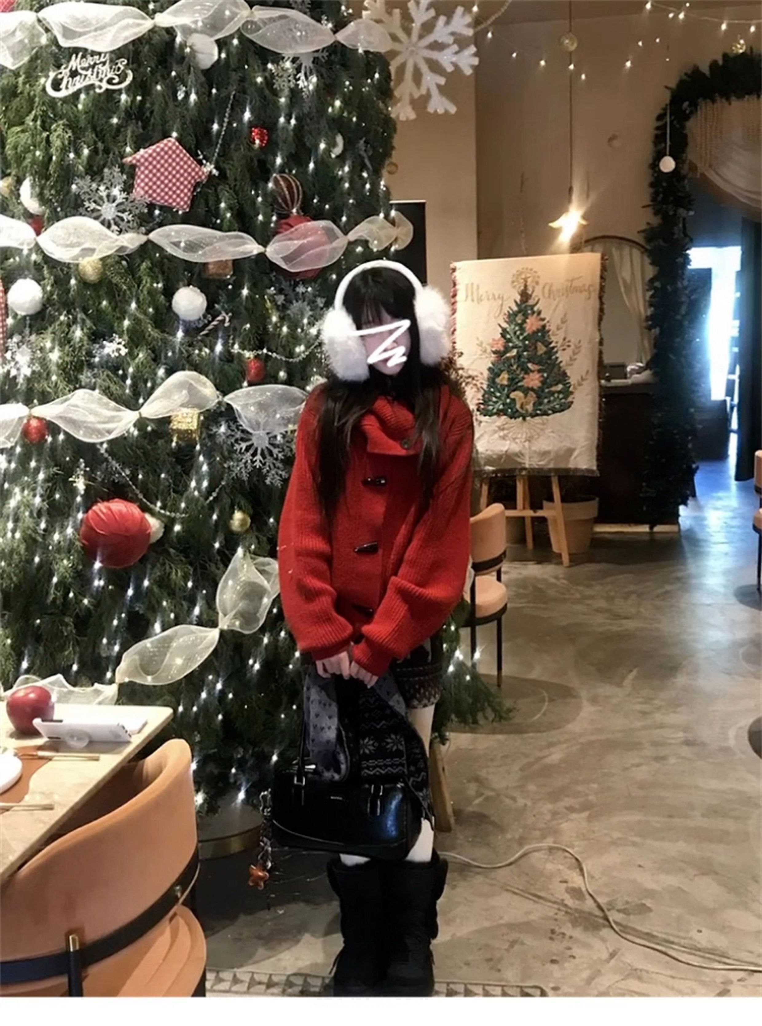 圣诞穿搭高级感红色高领毛衣女装2025秋冬季新款慵懒风针织衫上衣
