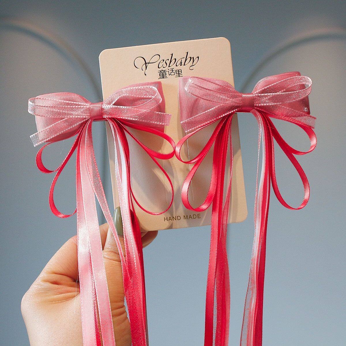 汉服发夹儿童头饰小女孩超仙古风蝴蝶结飘带对夹国风公主发饰头花