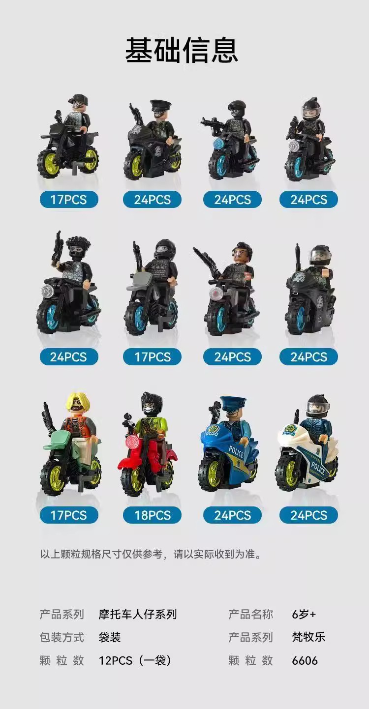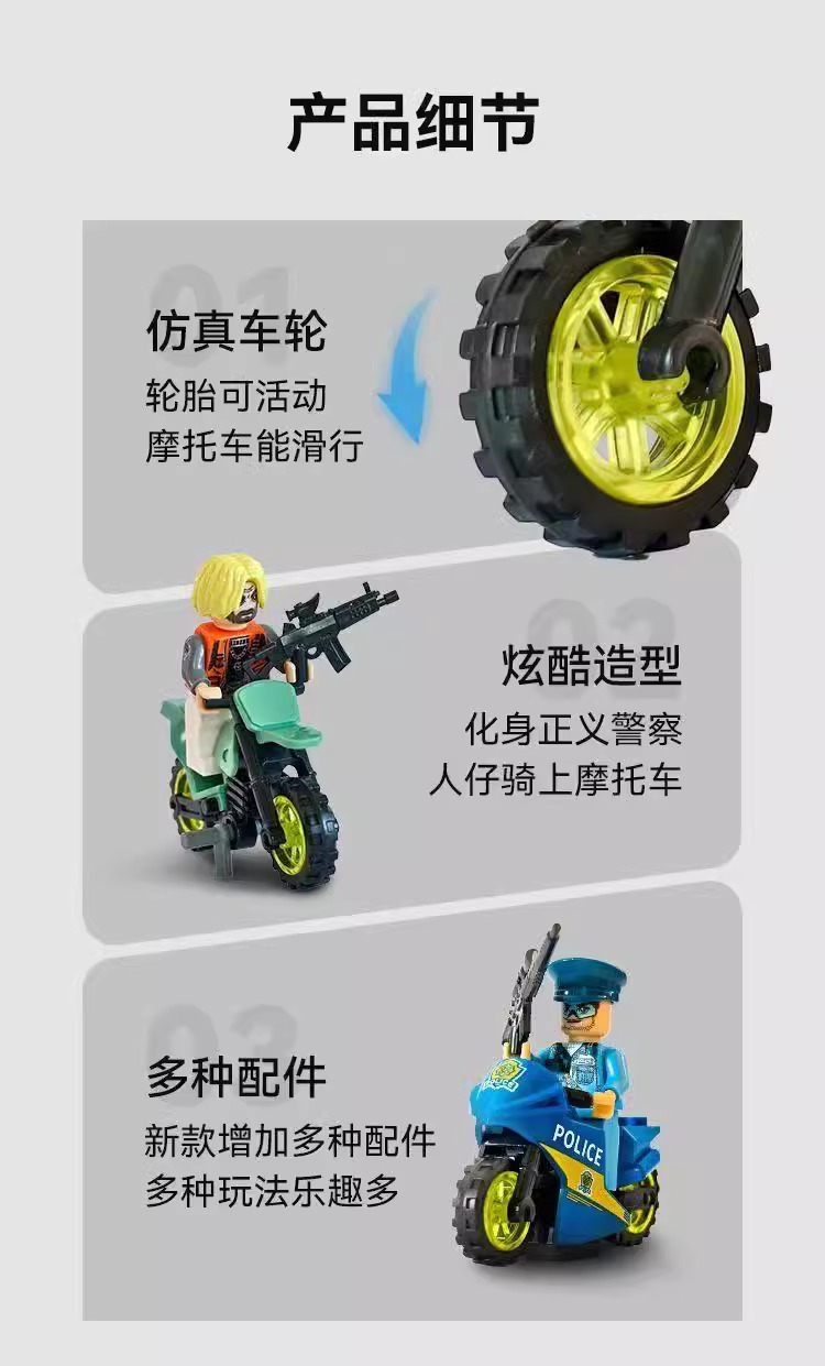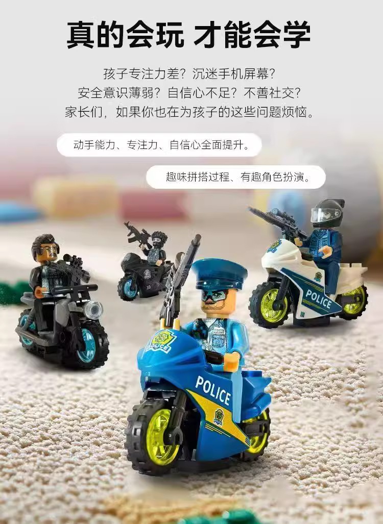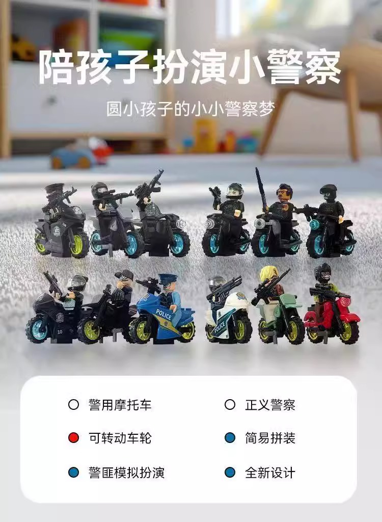 2025新款反恐特战队摩托车积木人仔益智拼装儿童炫酷玩具暑假礼物