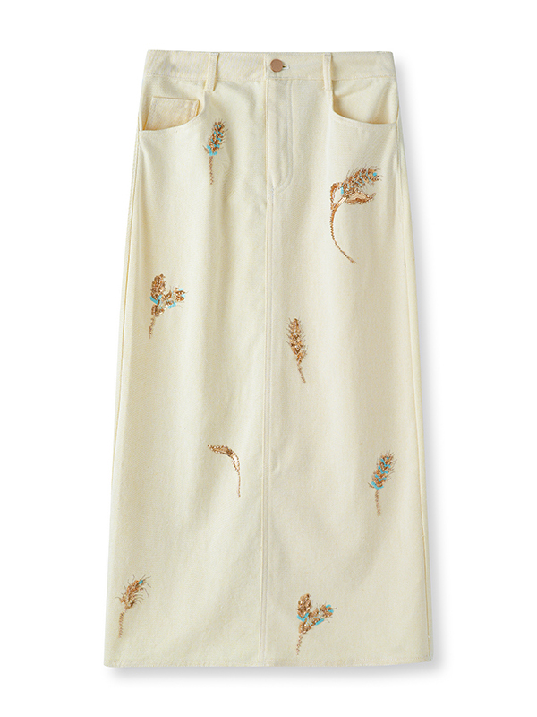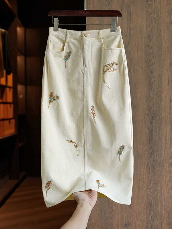 CHAO级推荐!直筒半身裙女小个子重工珠片显瘦高腰开叉a字中长裙