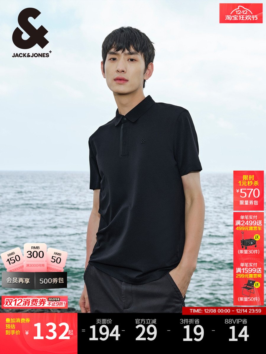 [杰出polo]杰克琼斯男装士25秋季速干polo衫压胶高级短袖T恤翻领