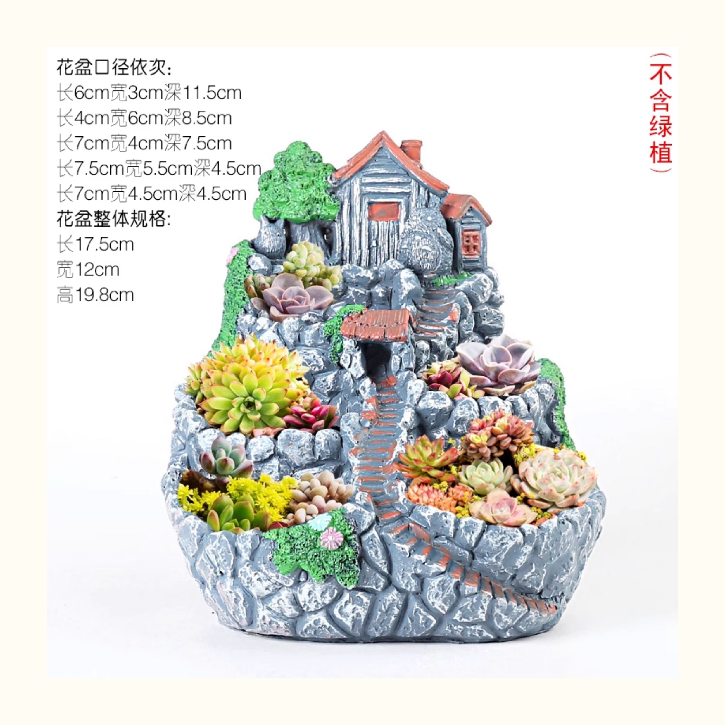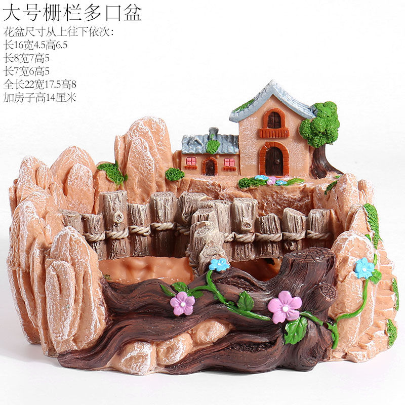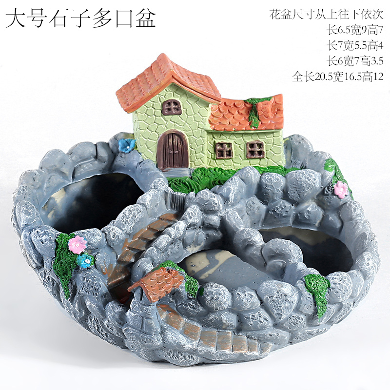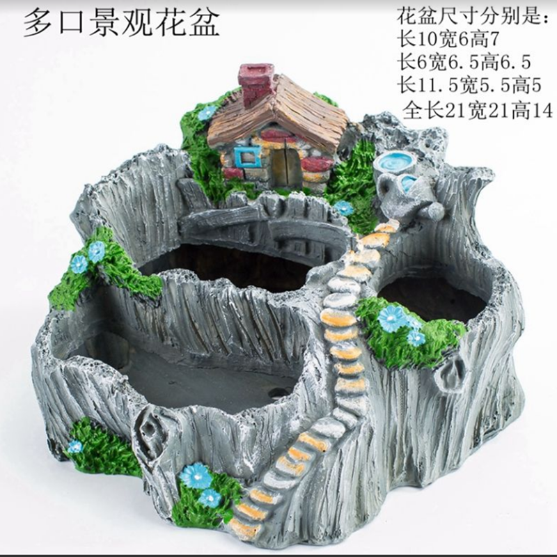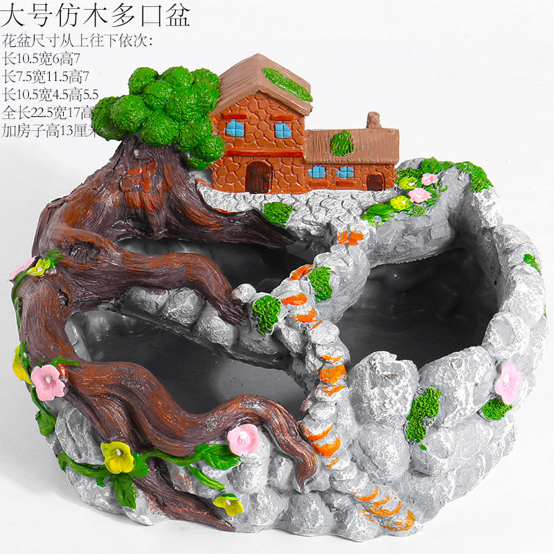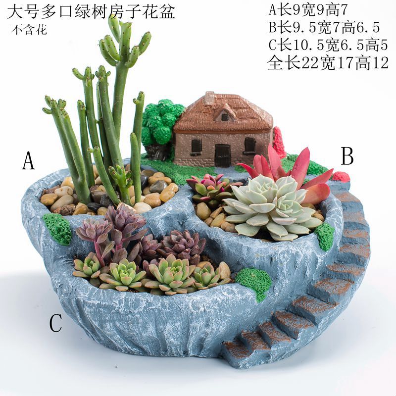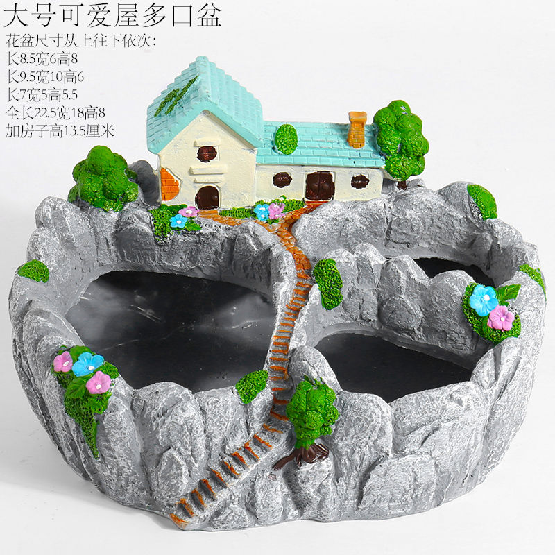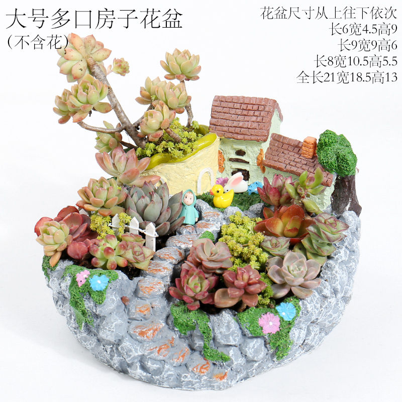 创意个性中大号口径多口房子摆件微景观家用多肉肉植物花盆悬崖桩