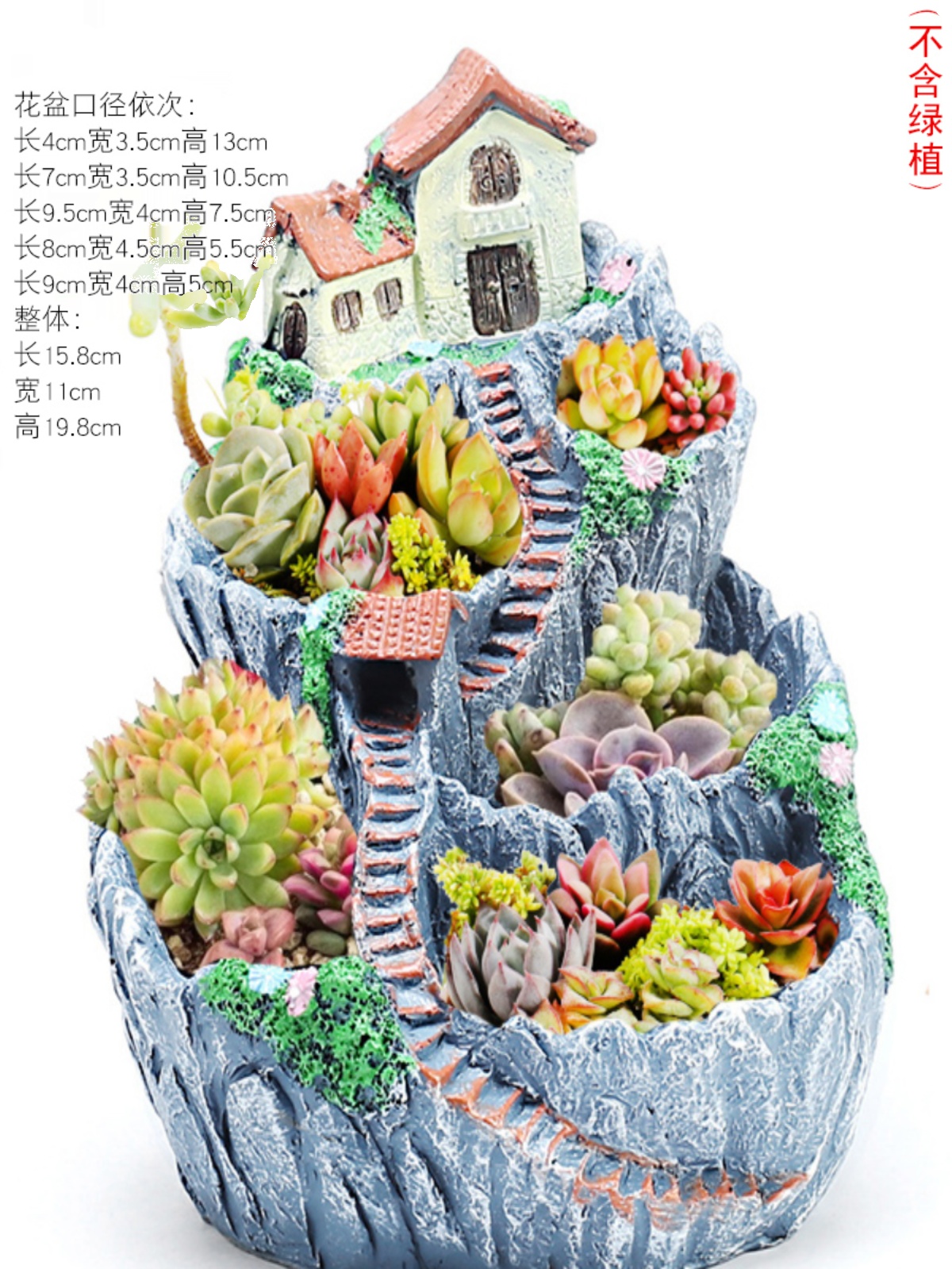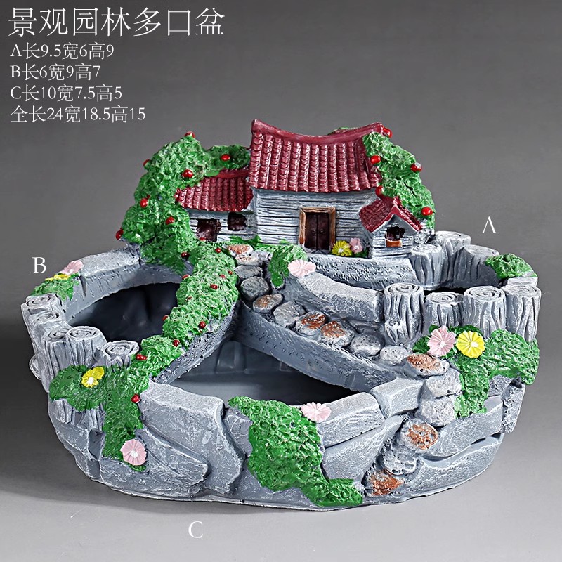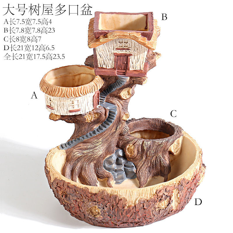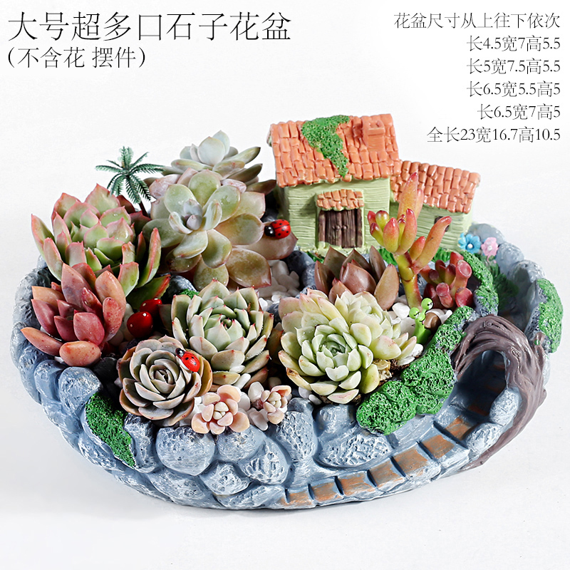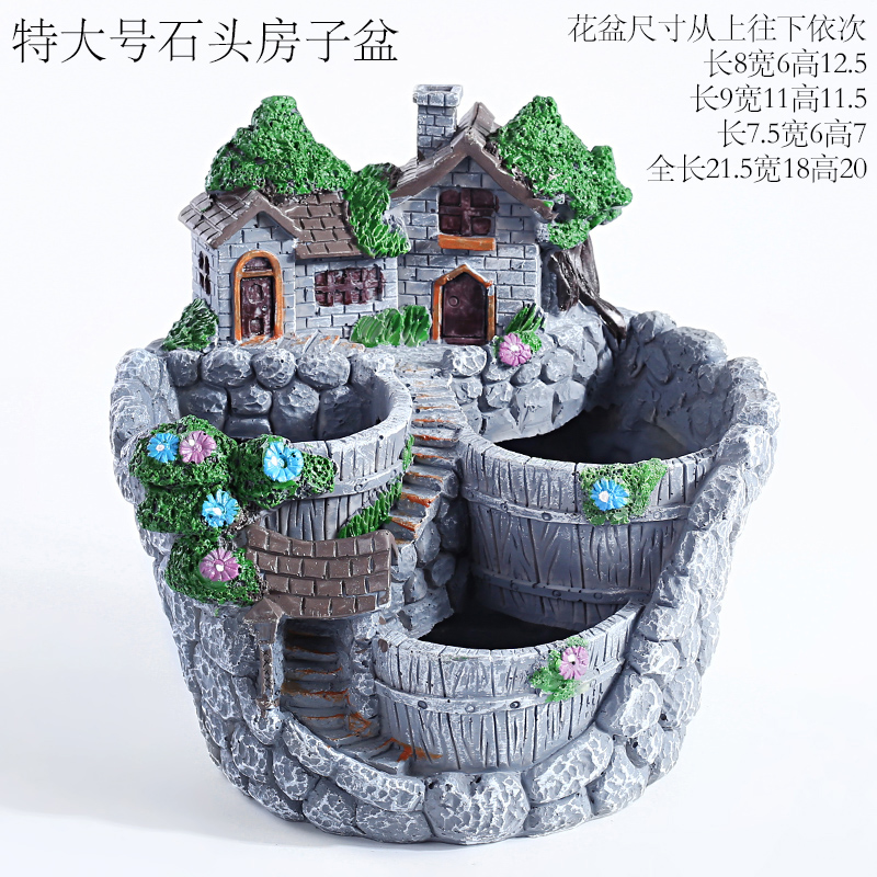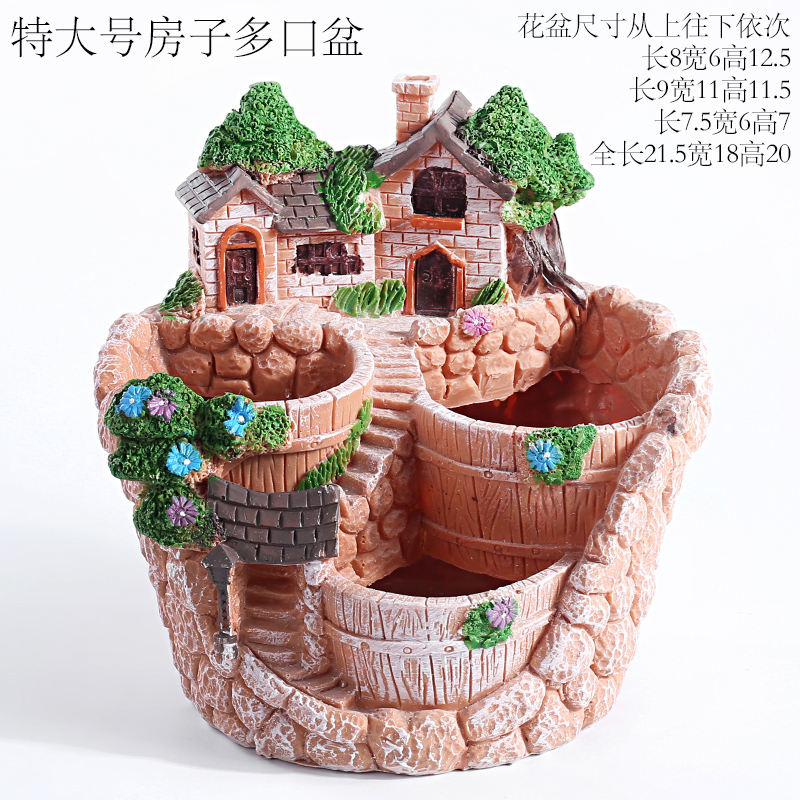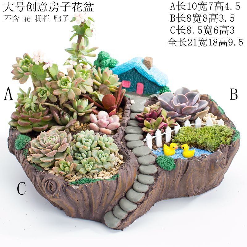 创意个性中大号口径多口房子摆件微景观家用多肉肉植物花盆悬崖桩