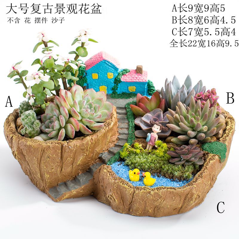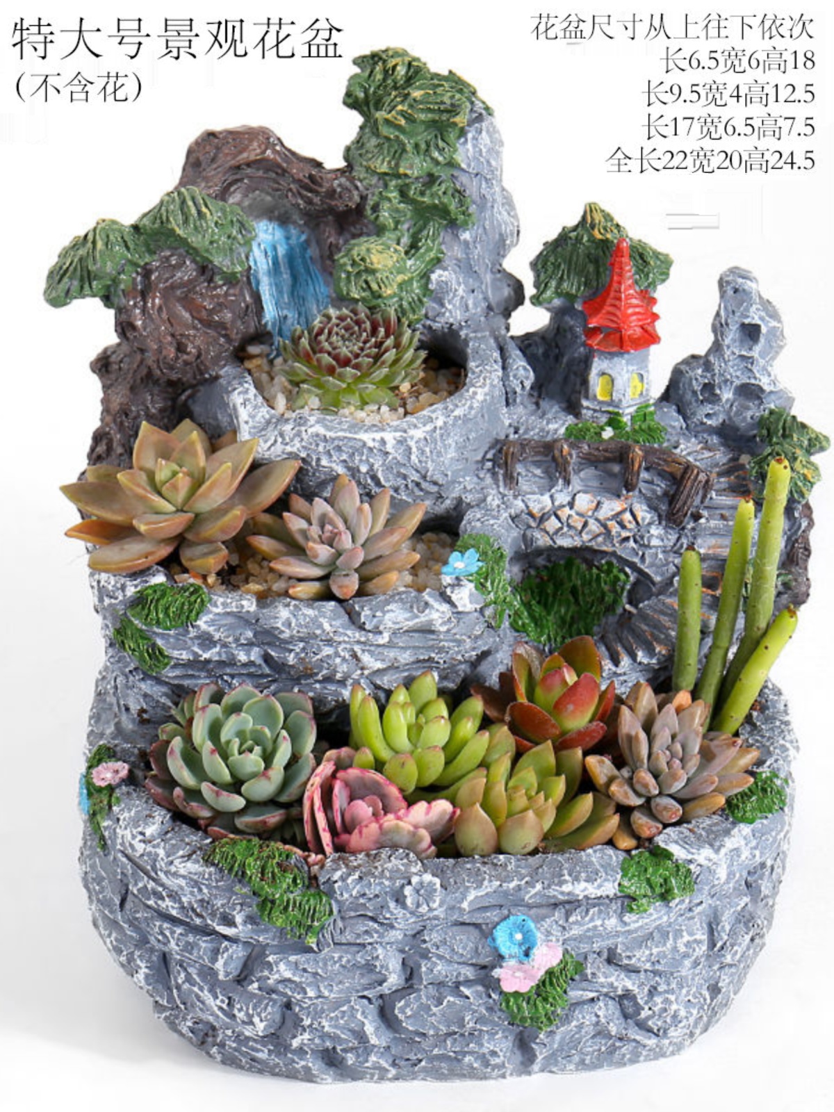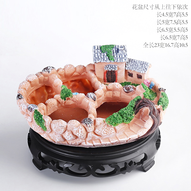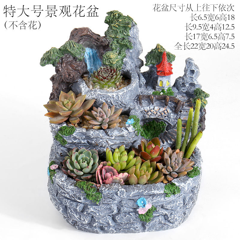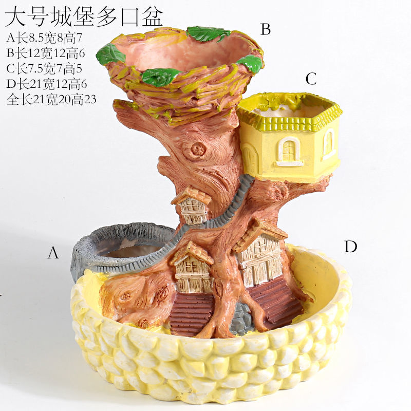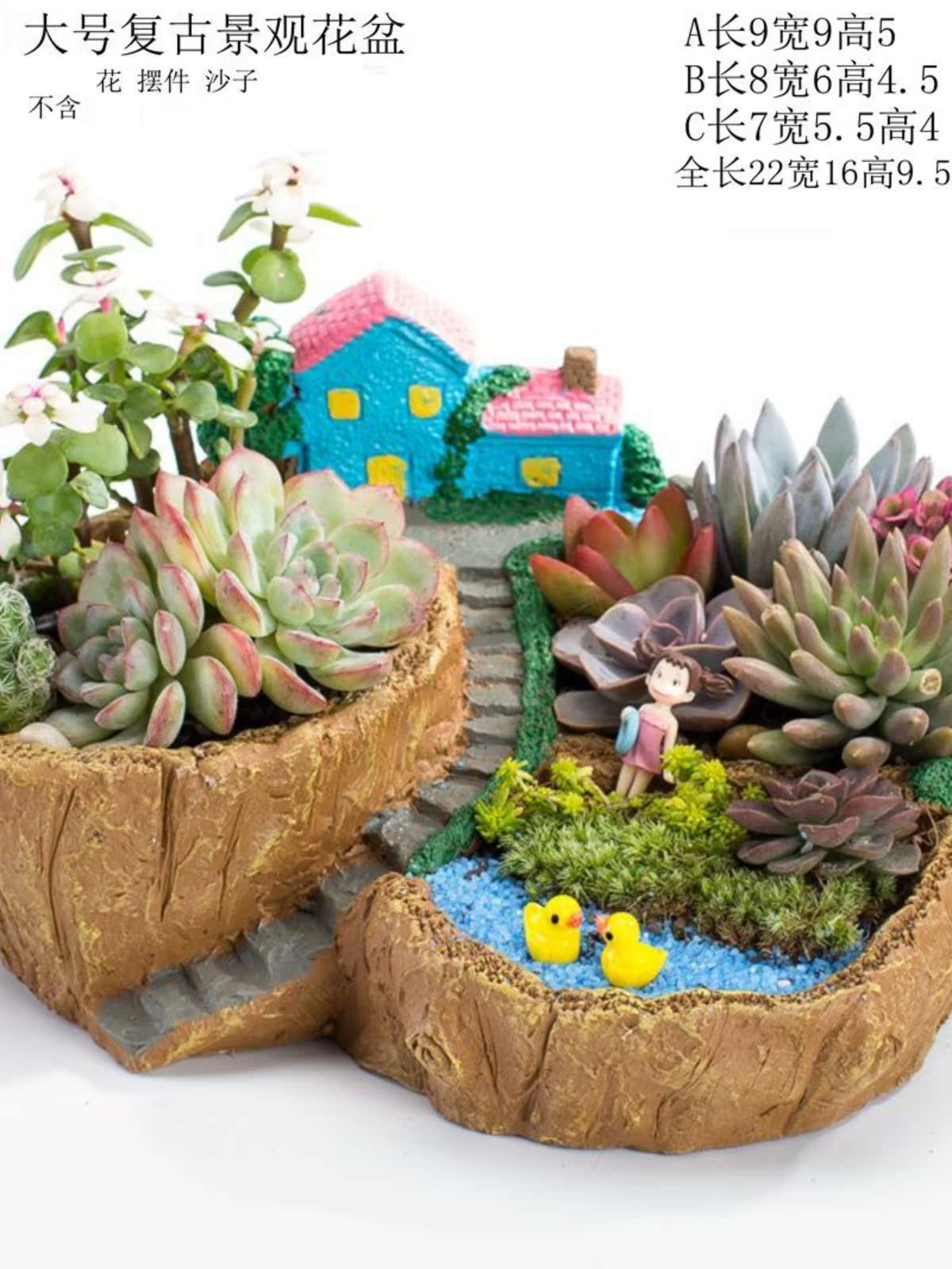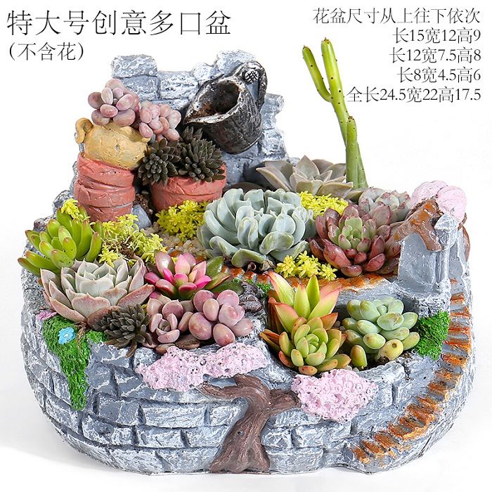 创意个性中大号口径多口房子摆件微景观家用多肉肉植物花盆悬崖桩
